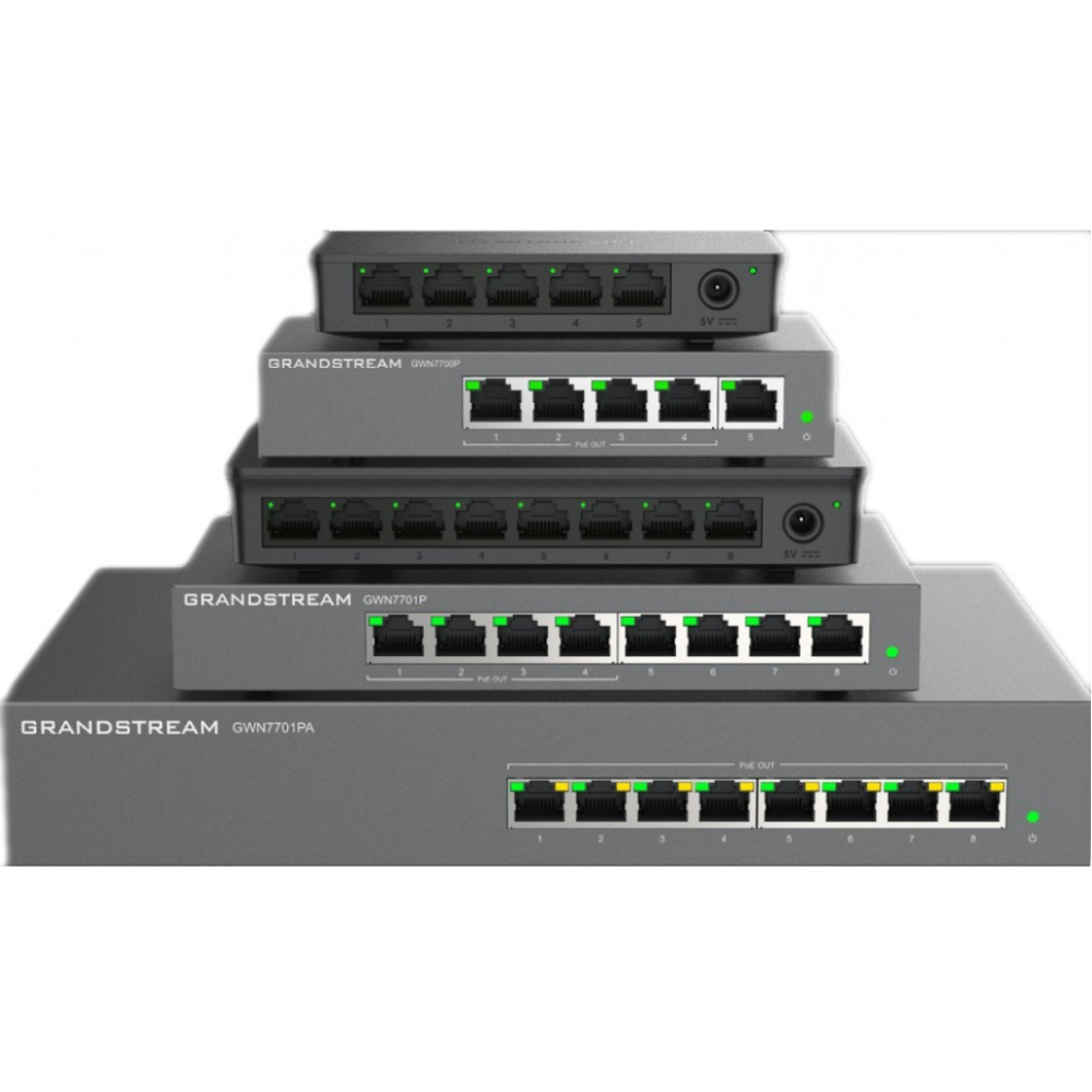 Коммутатор Grandstream GWN7701PA неуправляемый сетевой коммутатор для быстрой и экономичной организации высокоскоростного гигабитного соединения в домашних офисах и на объектах малого и среднего бизнеса. Его можно установить на столы и стены, коммутатор не требует настройки и поддерживает автоматическое определение MDI/MDIX, исключая необходимость в соединительных кабелях. Каждый порт поддерживает автосогласование, что позволяет коммутатору определять скорость соединения любого сетевого устройства (10/100/1000 Мбит/с) и подстраиваться, обеспечивая совместимость и оптимальную производительность. Модель Grandstream GWN7701PA оснащена портами с поддержкой стандарта IEEE 802.3af/at и динамическим управлением для питания IP-телефонов, IP-камер, точек доступа Wi-Fi и других конечных точек с PoE. Коммутатор Grandstream GWN7701PA с автоматической настройкой — это идеальный неуправляемый сетевой коммутатор для домашних офисов и небольших и средних компаний.