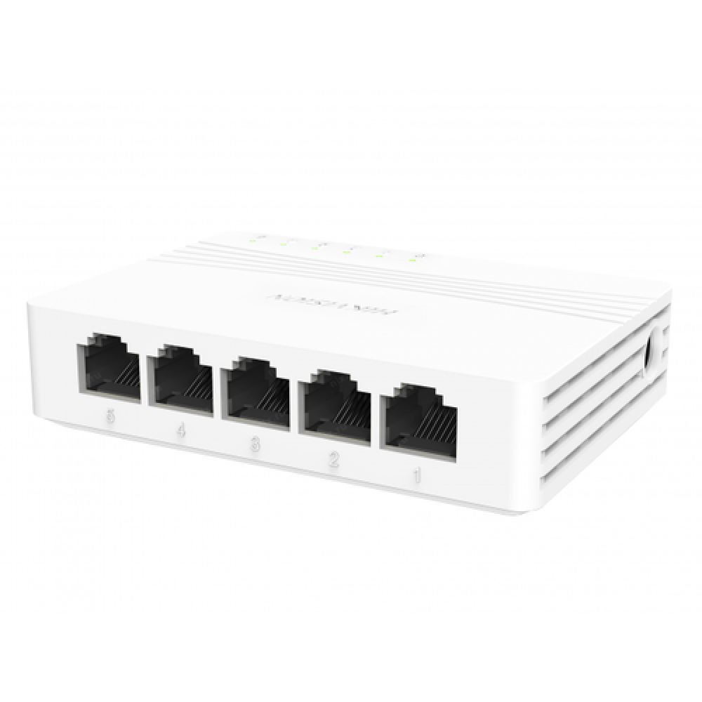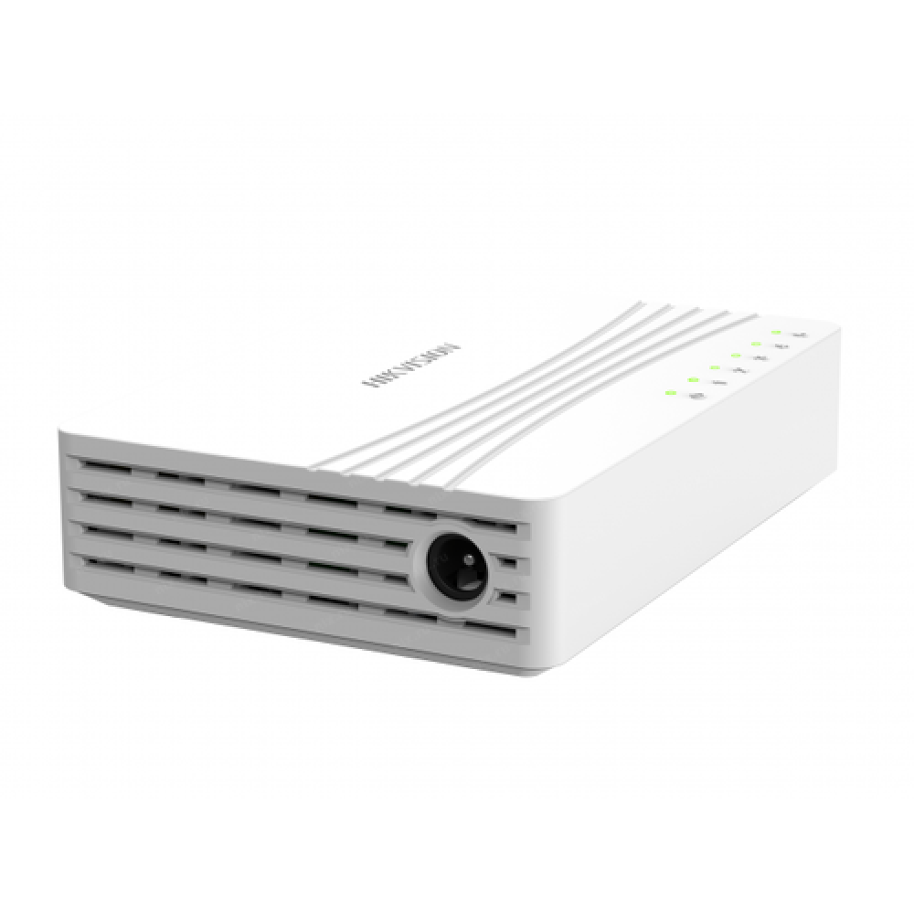 Коммутатор Hikvision DS-3E0505D-E предназначен для создания небольшой сети дома или в офисе. В оснащение модели входят 5 гигабитных портов. Внутренняя пропускная способность коммутатора равна 10 Гбит/с. Этот показатель достаточен для эффективного функционирования всех портов с полной загрузкой. Размер таблицы MAC-адресов – 2048 записей.