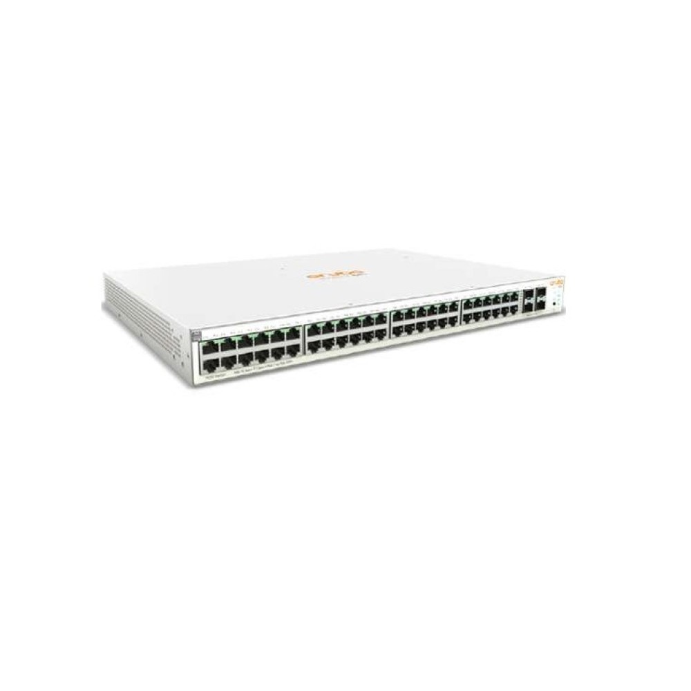 Этот управляемый коммутатор предназначен для среднего офиса и оснащен 48 портами Ethernet (LAN/RJ45) типа 1000 Base-TX (1000 Мбит/с), 4 UpLink-портами 10GBase-T (10,000 Мбит/с) и SFP+, а также поддержкой PoE на 4 портах, монтируется в стойку и обеспечивает внутреннюю пропускную способность 176 Гбит/с и поддержку VLAN.