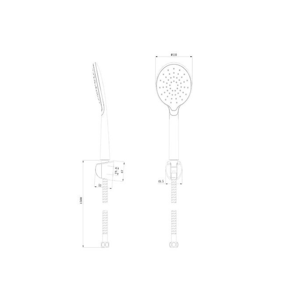 В комплекте с душем идет шланг длиной 1500 мм, что позволяет комфортно использовать его в душевых кабинах и ваннах.