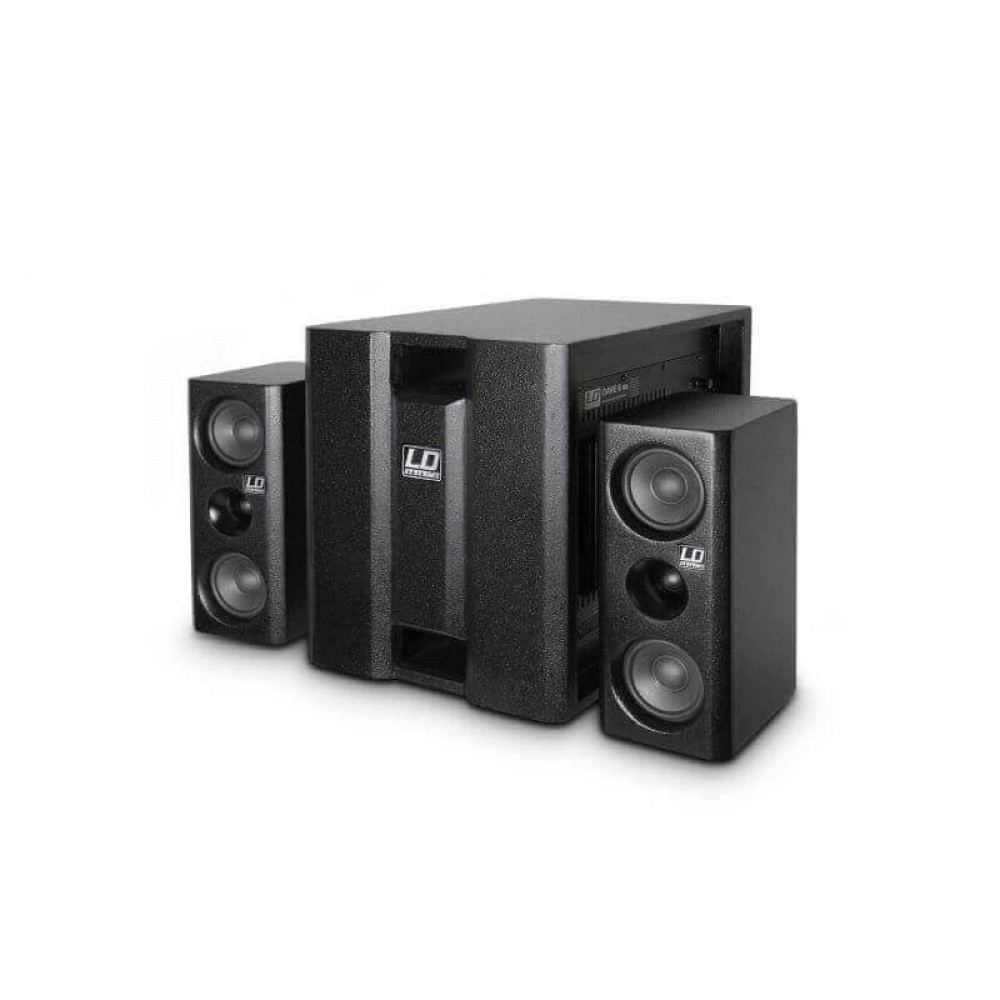 LD Systems DAVE 8 Roadie — это портативная активная 2.1 аудиосистема, предназначенная для музыкантов, диджеев, презентаций и небольших мероприятий. Комплект включает 8-дюймовый сабвуфер с фазоинвертором и два сателлита, каждый из которых оснащён двумя 4-дюймовыми динамиками и 1-дюймовым шёлковым твитером в конфигурации D’Appolito. Система обеспечивает мощность 350 Вт RMS и максимальное звуковое давление 117 дБ. Частотный диапазон составляет от 45 Гц до 19 000 Гц. Встроенный 3-канальный микшер позволяет подключать различные источники звука, включая микрофоны и инструменты. Компактный дизайн и встроенные ручки облегчают транспортировку и установку.
