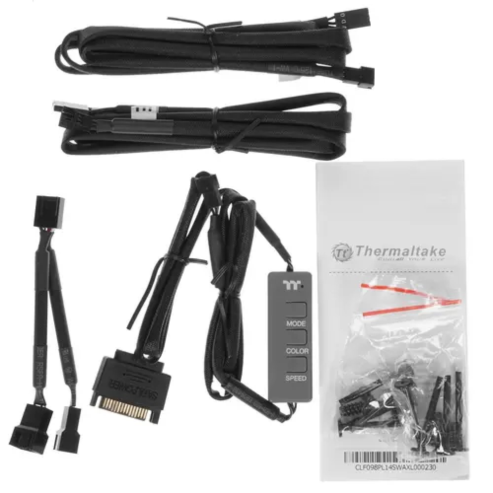 Антивибрационные накладки способствуют снижению показателей вибрации и шума в целом. Одной из особенностей вентиляторов Thermaltake Pure Duo 14 является программируемая многоцветная светодиодная подсветка ARGB Sync, рассеиваемая сквозь прозрачные лопасти. Кабели подключения и коннектор управления параметрами вентиляторов поставляются в комплекте.