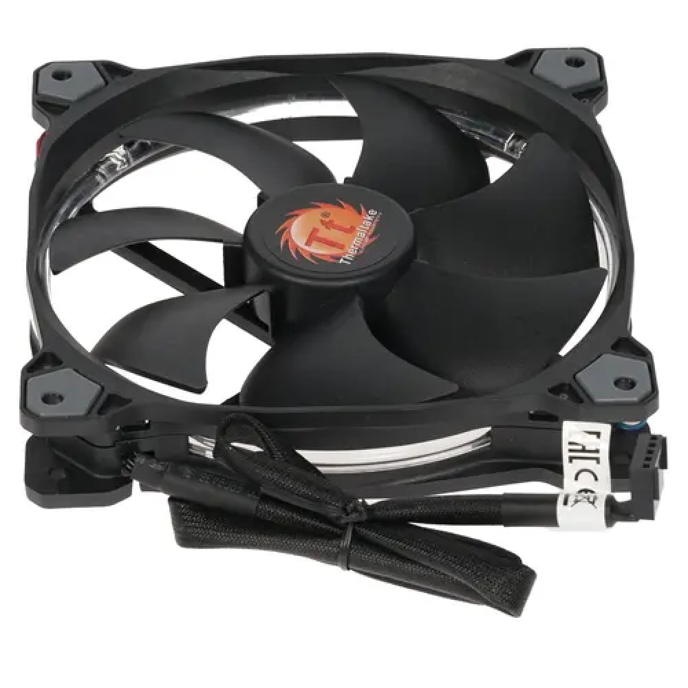 Под стать внешнему виду и технические характеристики вентиляторов. Thermaltake Riing 14 LED 256 Colors, имеющие габаритные размеры 140x140x25, обеспечивают воздушный поток до 51.15 CFM. Скорость вращения вентиляторов может изменяться от 600 до 1400 оборотов в минуту, а их время наработки на отказ составляет 40000 часов. Уровень шума на максимальной скорости составляет 28.1 дБ.