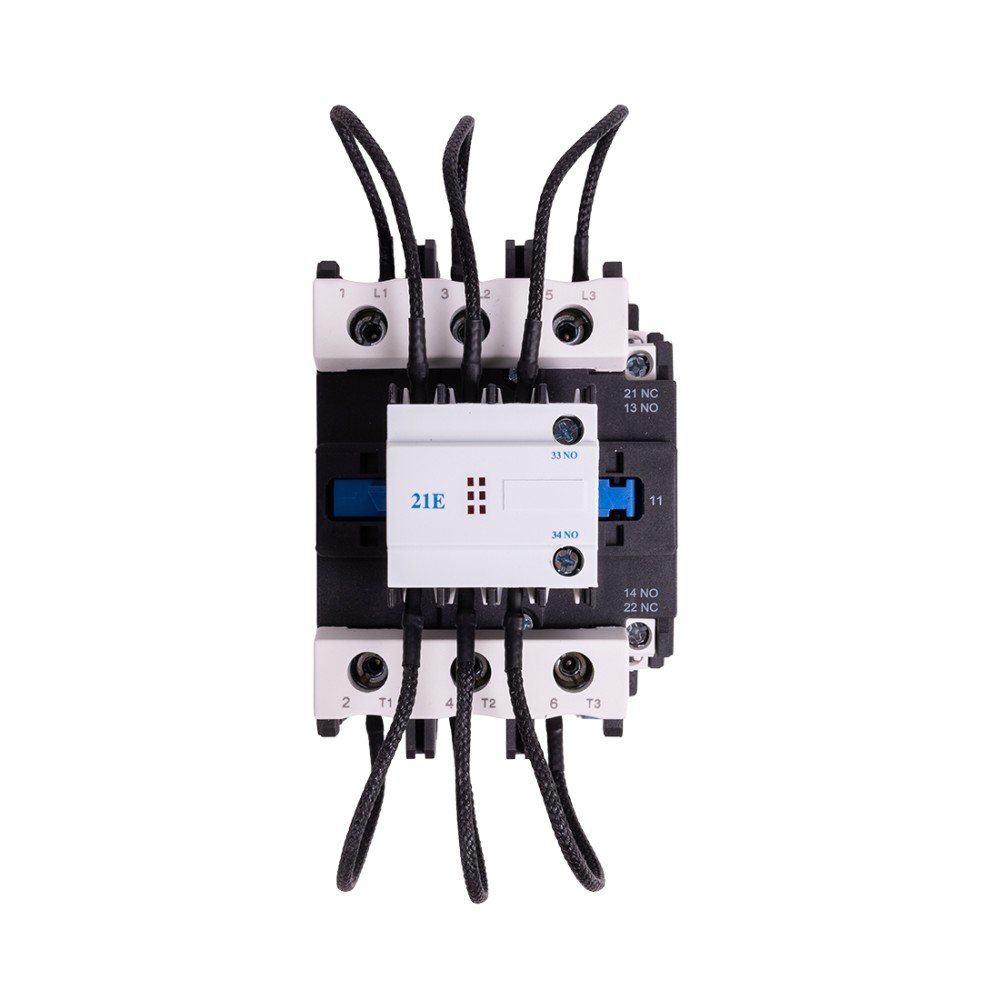 Предназначен для использования в устройствах компенсации реактивной мощности (УКРМ) для коммутации фазовых конденсаторов. Контактор оснащен резисторами, которые ограничивают скачок тока в момент включения конденсатора, что увеличивает его срок службы. Контактор серии CJ19 – это двухпозиционный электромагнитный аппарат, предназначенный для многократных дистанционных включений и выключений силовой цепи УКРМ. Выбор контактора осуществляется по номинальному току ступени регулирования в устройстве компенсации реактивной мощности.