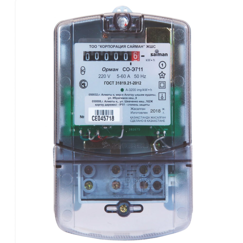 Статический счетчик (электронный) активной энергии Однофазный однотарифный ОРМАН СО-Э711 Т1 Д 220V 5(60)А на дин-рейке Код CY предназначен для измерения активной энергии в однофазных двухпроводных цепях переменного тока по одному тарифу.