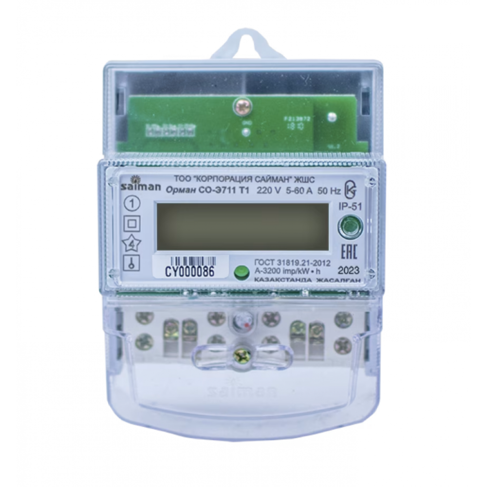 Статический счетчик (электронный) активной энергии Однофазный однотарифный ОРМАН СО-Э711 Т1 Д 220V 5(60)А на дин-рейке Код CY предназначен для измерения активной энергии в однофазных двухпроводных цепях переменного тока по одному тарифу.