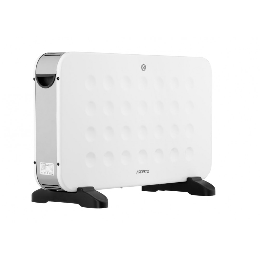 Электрический конвектор Ardesto CHH-2000MWC белого цвета представляет собой напольное устройство для эффективного обогрева помещений площадью до 20 м². Конвектор оснащён механическим термостатом и возможностью регулировки температуры с двумя уровнями мощности, максимальная мощность обогрева составляет 2000 Вт. Тип нагревательного элемента — ТЭН, обеспечивающий быстрый и равномерный прогрев воздуха.