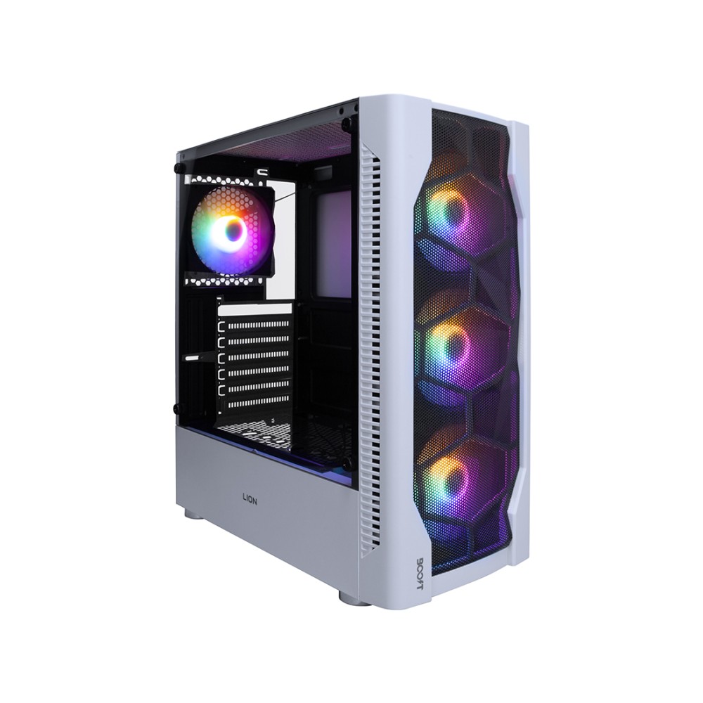 Компьютерный корпус 1STPLAYER DK-D4 рассчитан на сборку игрового компьютера среднего или начального уровня. Модель также подходит для создания универсального системного блока для дома или офиса. Корпус имеет фронтальную панель с металлической сеткой, за которой расположены три 120-миллиметровых вентилятора. Четвертое устройство теплоотвода установлено сзади. Украшение корпуса - встроенная в вентиляторы многоцветная подсветка.