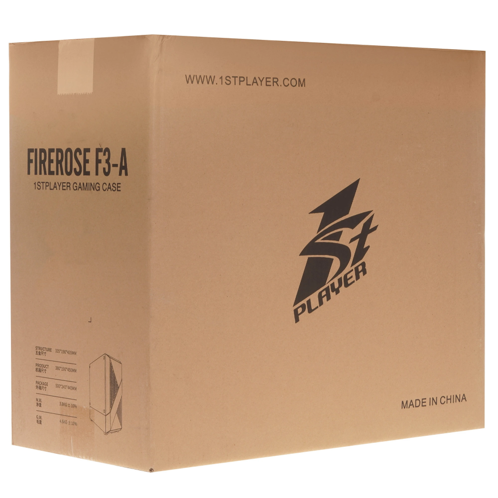 Корпус 1STPLAYER FIREROSE F3-A позволяет собрать рабочий или игровой ПК. Модель типоразмера Mid-Tower выполнена в комбинации черного и белого цветов. Окно из закаленного стекла делает видимыми внутренние компоненты, что упрощает обслуживание. Корпус совместим с платами формата Micro-ATX, Mini-ITX, Standard-ATX и предусматривает вертикальную установку компонента. В нем отсутствует встроенный блок питания: корпус совместим с форматом ATX. Расположение блока в нижней части внутреннего пространства улучшает циркуляцию воздуха и создает эффективное охлаждение.