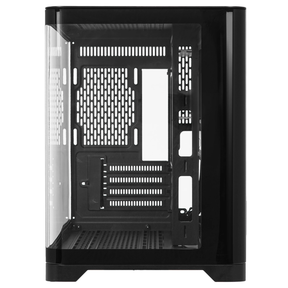 1STPLAYER UVIEW UV6 поддерживает установку блока питания формата ATX, который размещается в нижней части корпуса. Это позволяет оптимизировать пространство и улучшить вентиляцию внутри системы. Также предусмотрены 4 горизонтальных слота расширения, которые подходят для установки карт расширения.