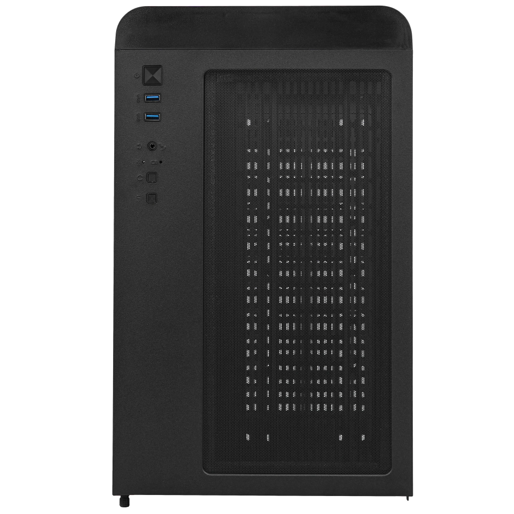 Корпус выполнен из стали и закаленного стекла, что придает ему прочность и изысканный внешний вид. Боковая панель с окном и фронтальная панель из стекла позволяют продемонстрировать внутреннее убранство системы, в том числе установленные компоненты.