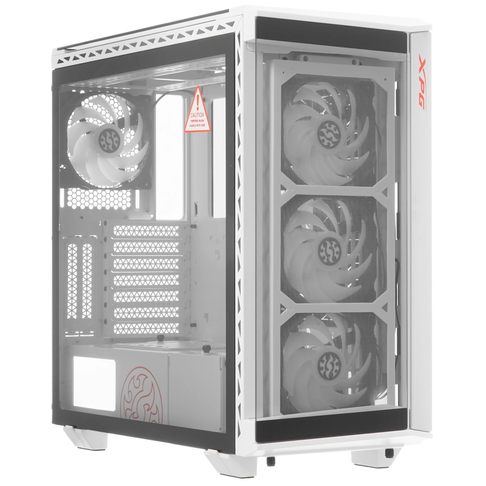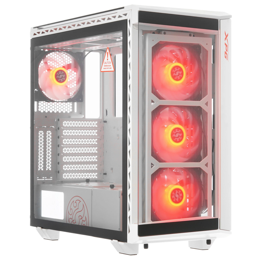 Корпус A-Data XPG BATTLECRUISER (BATTLECRUISER-WHCWW) создан специально для геймеров и выполнен в оригинальном белом цвете. Модель представлена в формате «средняя башня» и состоит из надежного металлического каркаса с панелями из закаленного стекла. Главная особенность данного корпуса – в полностью прозрачных стенках, внутри которых заключены 4 вентилятора ARGB с 13 режимами подсветки. Пользователю доступна синхронизация световых эффектов с музыкой через системную плату.