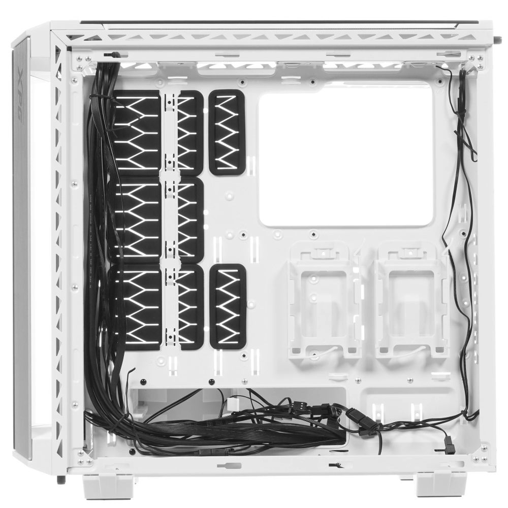 Корпус A-Data XPG BATTLECRUISER (BATTLECRUISER-WHCWW) спроектирован таким образом, что для установки воздушного фильтра или магнитной панели не потребуется усилий, а сборка боковой и верхней панели происходит без инструментов. Предустановленные вентиляторы диаметром 12 см обеспечивают эффективное охлаждение, но, если этого покажется мало, поддерживаются несколько радиаторов до 36 см и кулер ЦП до 17 см. Также в перспективе предусмотрена возможность модернизации путем установки системных плат, видеокарт и графических процессоров.