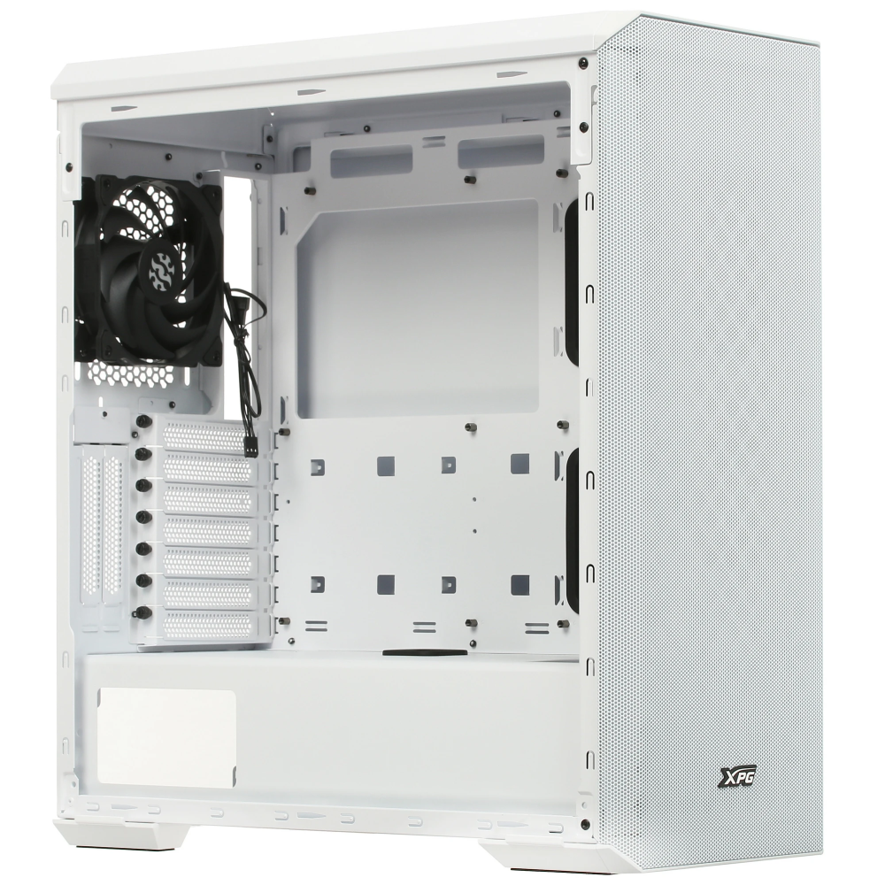 Белый корпус ADATA XPG DEFENDER отличается стильным дизайном и функциональными возможностями, предназначенными для геймеров и энтузиастов. Он оснащен стеклянной панелью на боковой стенке, которая позволяет показать внутренние компоненты компьютера.