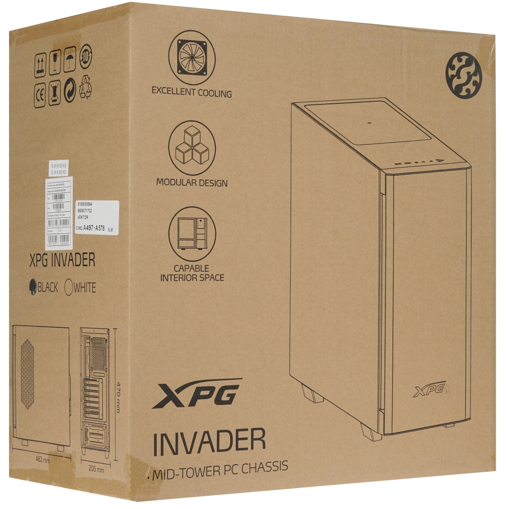 Конструкция корпуса ADATA XPG INVADER (INVADER-BKCWW) спроектирована таким образом, что для установки панелей не требуются инструменты, чем обусловлена простота технического обслуживания. Система высокой циркуляции с боковым отверстием для забора воздуха в тандеме с двумя вентиляторами 12 см обеспечивают полное охлаждение даже при высоких нагрузках. Модульная конструкция позволяет дополнительно подключить 2 радиатора: 36 см впереди и 24 см сверху, а также использовать различные типы системных плат. У пользователя всегда под рукой 2 порта USB-A 3.2 и гибридный 3.5 мм jack.