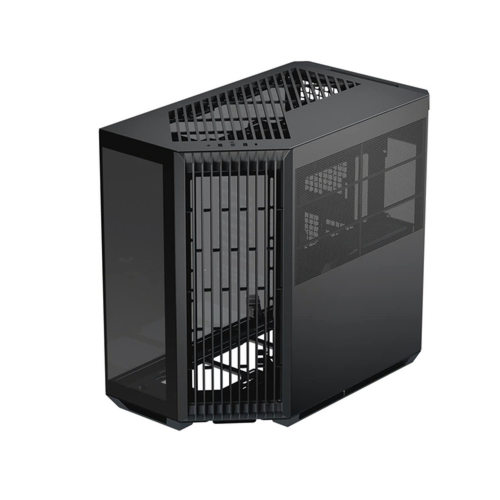 Чёрный корпус Aerocool APNX V1 (ATX/mATX), поддержка видеокарт до 395 мм и кулеров до 170 мм, USB Type-C, 2×3.5" и 6×2.5" слота, без БП.