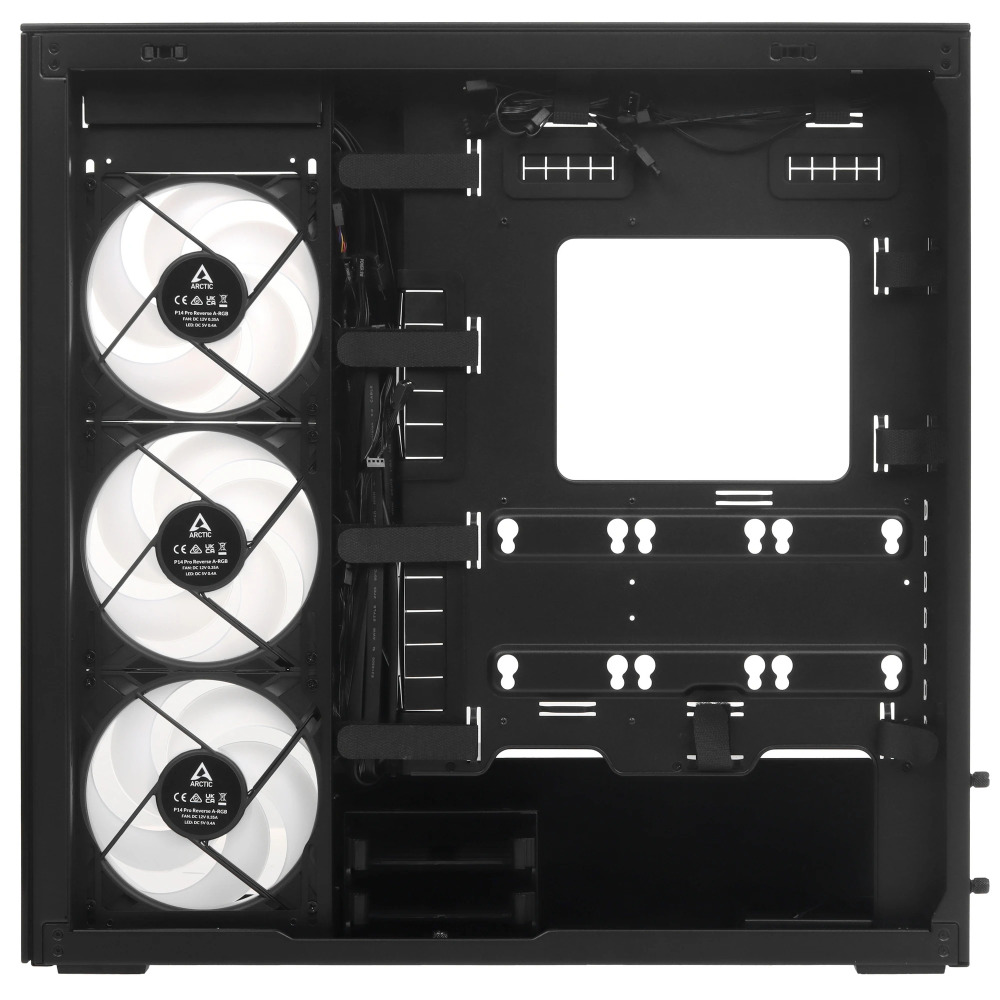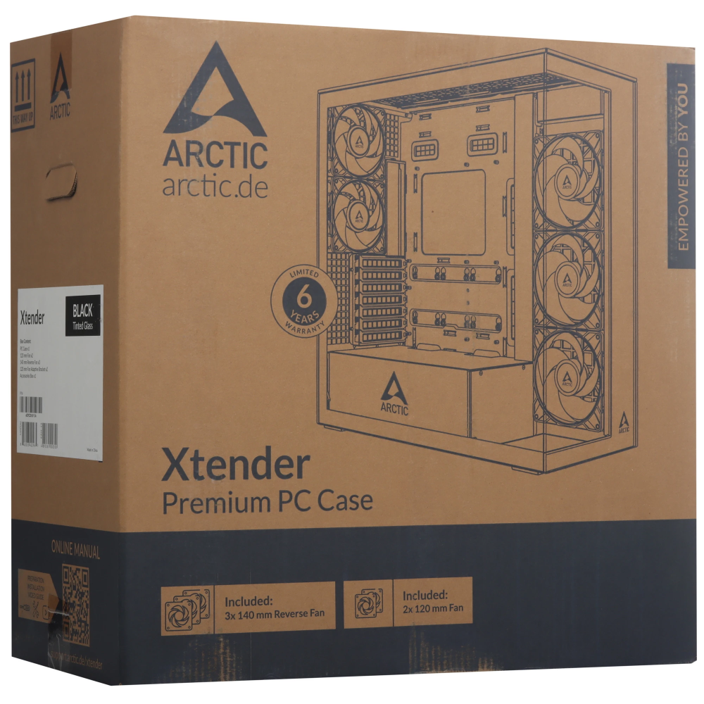 Arctic Xtender — это панорамный корпус с высокой вентиляцией, обеспечивающий максимальную циркуляцию воздуха. Пять предустановленных вентиляторов обеспечивают эффективное охлаждение даже высокопроизводительных компонентов.