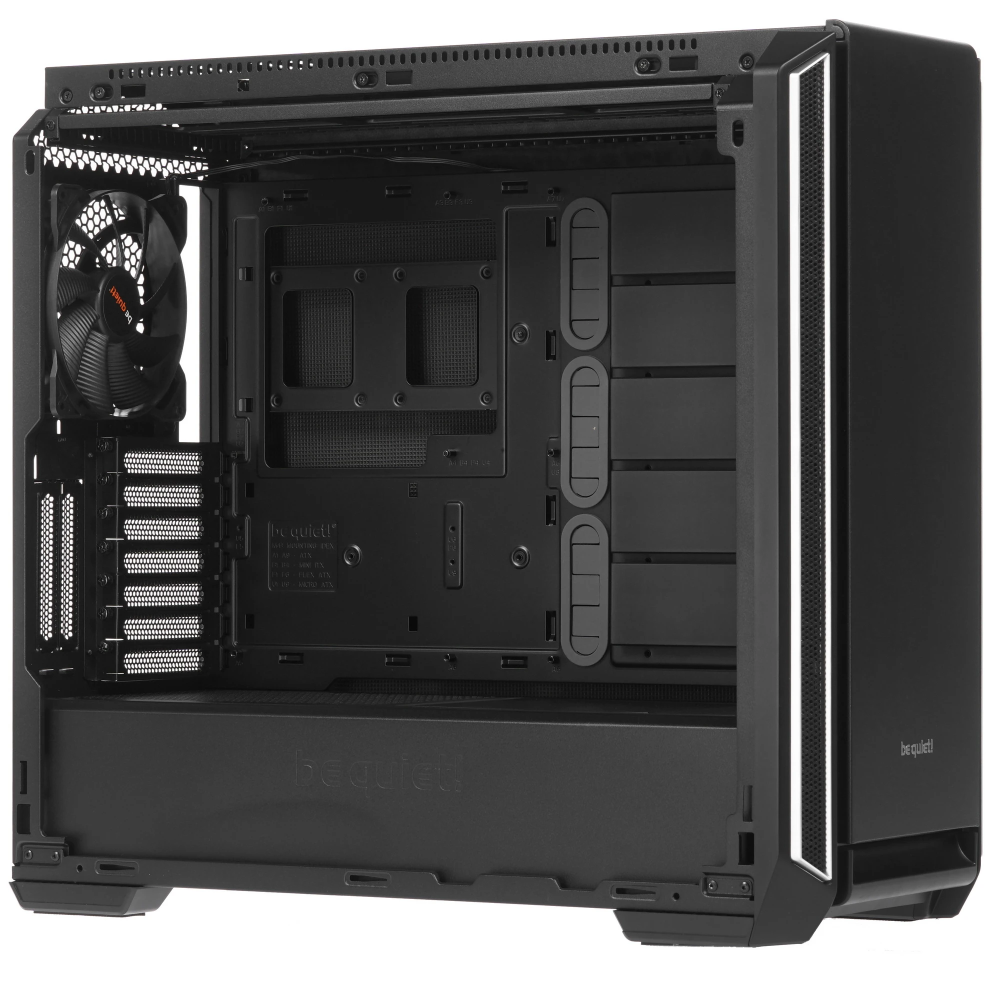 Корпус Be Quiet Silent BASE 601 window (BGW27) выполнен в формате Mid-Tower, что позволяет устанавливать материнские платы Mini-ITX, Micro-ATX, а также Standard-ATX и E-ATX. Для электроснабжения могут использоваться блоки питания типа ATX с нижним расположением. Максимальная длина видеокарты может достигать 449 мм, также допускается ее вертикальная установка. Допустимая высота башни кулера процессора составляет 185 мм. Также данный корпус отличается широкими возможностями для установки накопителей формата 2.5" и 3.5". Благодаря возможности безвинтового крепления и прокладки кабелей за задней стенкой обеспечивается удобная и быстрая сборка систем различной сложности.