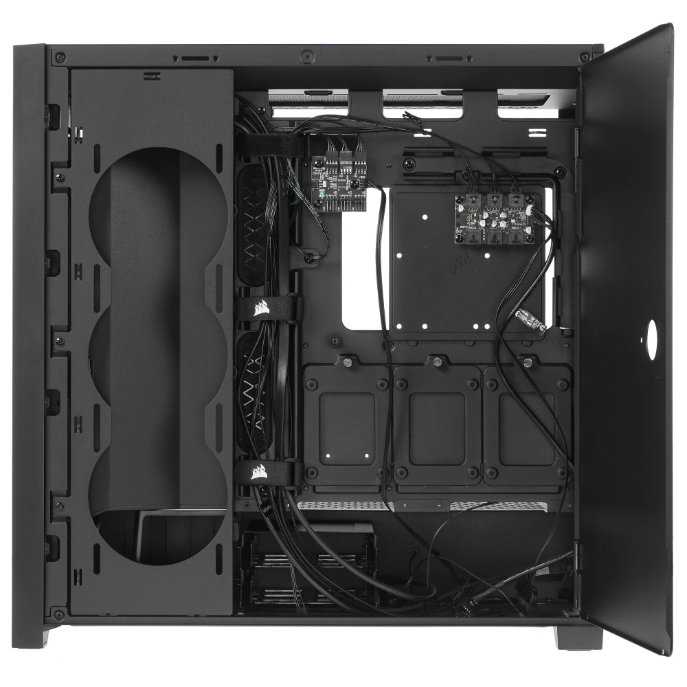 Корпус Corsair iCUE 5000X RGB (CC-9011212-WW) с прозрачными панелями из закаленного стекла, продуманными вентиляционными отверстиями и подсветкой RGB одновременно сочетает стиль и продуктивность. В его оснащение входят мощные характеристики для организации высокопроизводительной аппаратной платформы. Изначально в корпусе предустановлено 3 вентилятора с программируемой подсветкой, количество которых можно увеличить до 8. Также отмечается возможность установки кулера водяного охлаждения. Из других особенностей Corsair iCUE 5000X RGB отмечаются продуманная организация укладки кабелей и пылевой фильтр.