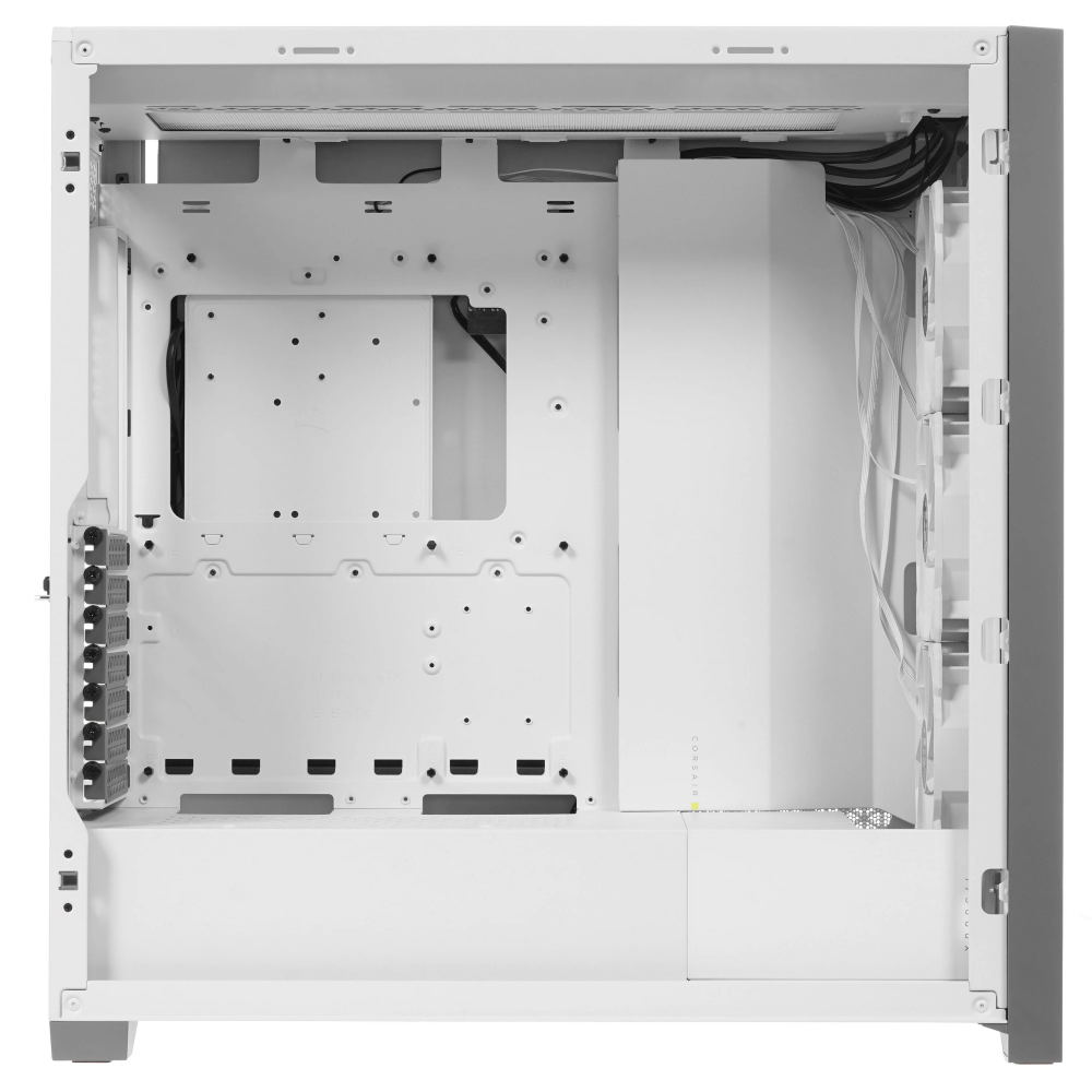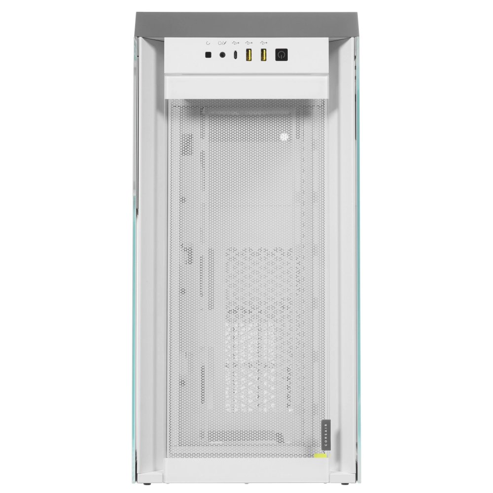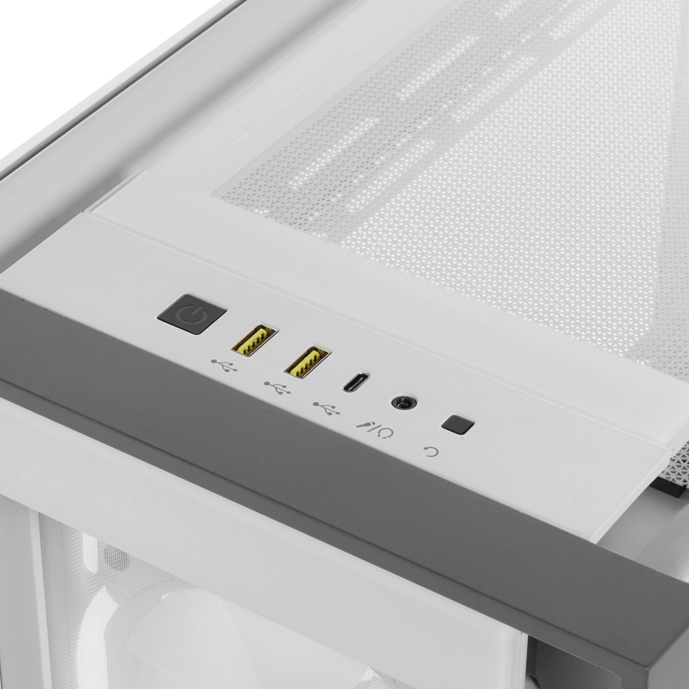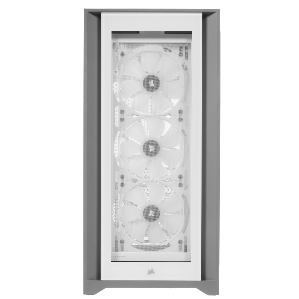 Корпус Corsair iCUE 5000X RGB (CC-9011213-WW) выделяется оформлением в белом цвете и прозрачными стеклянными панелями с нескольких сторон. Внутренняя конструкция шасси предусматривает установку полноразмерной материнской платы, графического ускорителя, нескольких накопителей 3.5 и 2.5 дюйма, до 8 вентиляторов, системы водяного охлаждения и других мощных комплектующих. Изначально в корпусе предустановлено 3 вентилятора с программируемой настраиваемой подсветкой. К другим особенностям Corsair iCUE 5000X RGB относятся удобная укладка кабелей и пылевой фильтр.