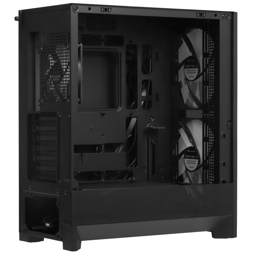 Корпус Cougar Airface 180 RGB Black представляет собой MidTower, предназначенный для материнских плат формата Mini-ITX/Micro-ATX/Standard-ATX/CEB. Он поставляется без блока питания и имеет черный цвет. Корпус оснащен двумя отсеками для накопителей формата 2.5" и двумя отсеками 3.5", что позволяет гибко настраивать внутреннее пространство. Кроме того, в корпусе имеется семь слотов расширения, что дает возможность устанавливать различные периферийные устройства. Максимальная высота процессорного кулера может достигать 170 мм, а максимальная длина видеокарты – 340 мм, что позволяет использовать достаточно мощное оборудование.