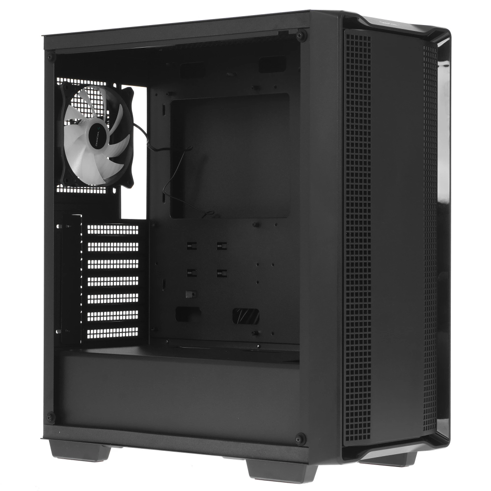 Внутри среднеразмерного корпуса DEEPCOOL CC560 (R-CC560-BKGAA4-G-1) получится собрать производительную игровую машину, которую получится использовать и для офисной работы. У него есть сразу 4 вентилятора и панель из закаленного стекла, через которую видно голубую подсветку. Основой конструкции является сталь. Внутри найдется место для платы размером Micro-ATX, Mini-ITX или Standard-ATX, а также для видеокарты длиной до 37 см. Боковые панели можно крепить на винты сверху или сзади. Благодаря пылевому фильтру и прокладывании кабелей за задней стенкой внутри корпуса DEEPCOOL CC560 (R-CC560-BKGAA4-G-1) будут чистота и порядок.