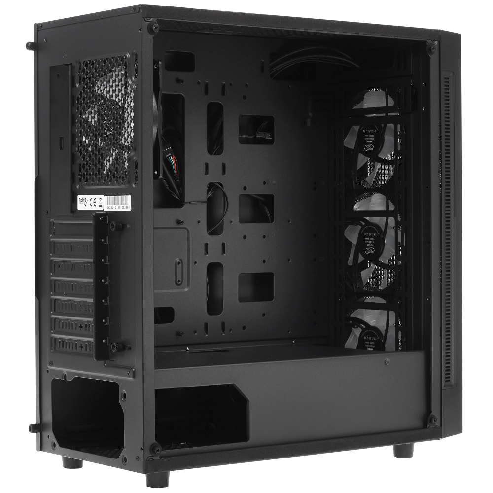 Корпус DEEPCOOL MATREXX 55 MESH ADD-RGB 4F (DP-ATX-MATREXX55-MESH-AR-4F) типоразмера Mid-Tower с эффектным черным цветовым исполнением дает возможность смонтировать плату типоразмера Standard-ATX или E-ATX, Micro-ATX, Mini-ITX. Оптимальная для постройки высокопроизводительной игровой системы модель предлагается без предустановленного БП. В ней предусмотрена предустановленная система отвода избыточного тепла, включающая четыре 120-миллиметровых кулера. Размещенные в передней и в задней панелях вентиляторы снабжаются многоцветной настраиваемой подсветкой на ARGB-диодах.