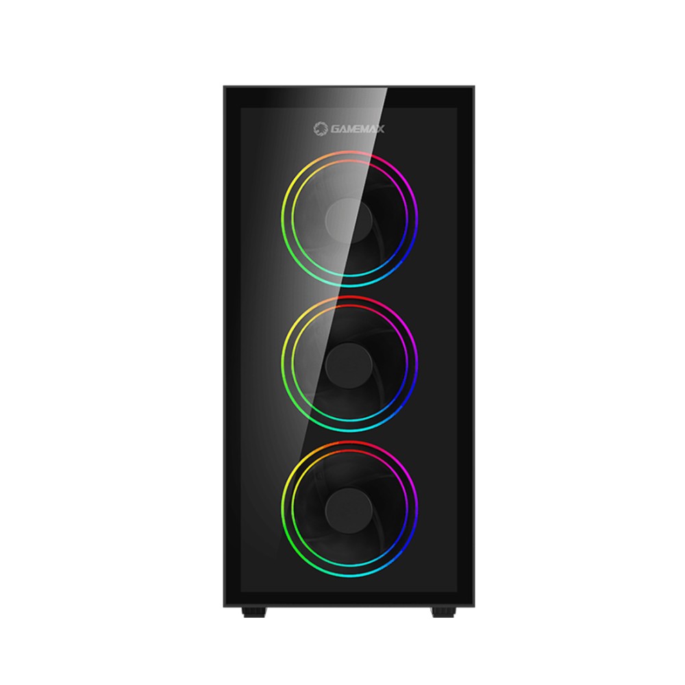 Корпус GameMax Draco XD среднего размера Mid-Tower раскроет красоту компонентов системы. Боковая стенка из закаленного стекла продемонстрирует внутреннюю часть корпуса. Полностью стеклянная передняя панель позволяет видеть и озарять комнату яркими красками трех вентиляторов с адресуемой RGB-подсветкой.