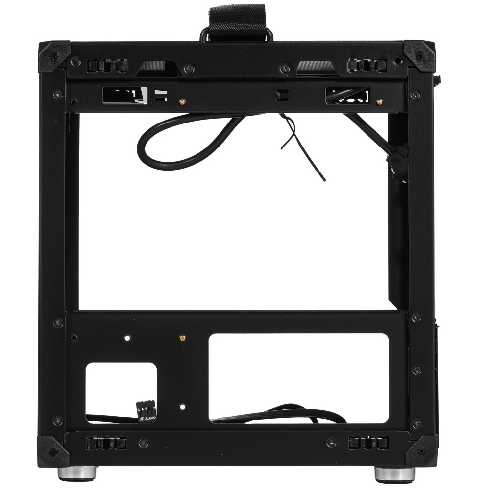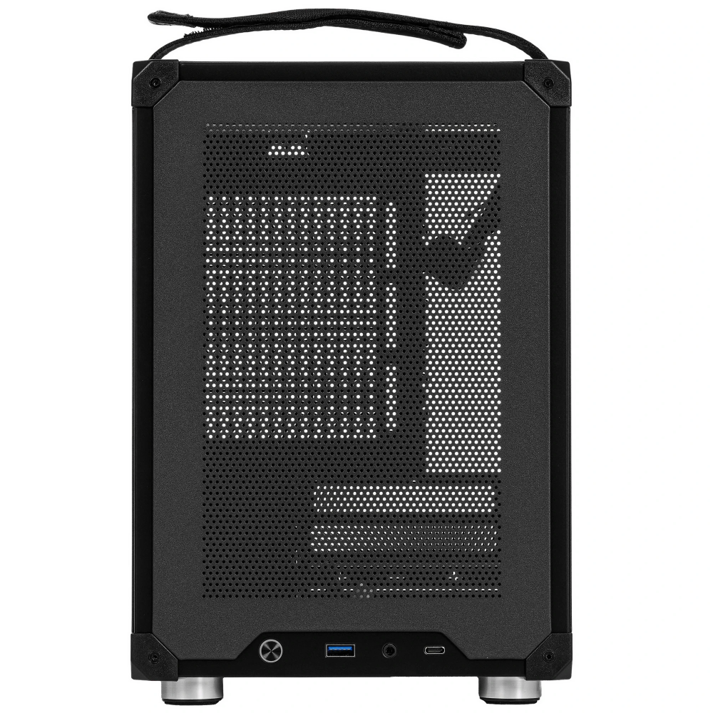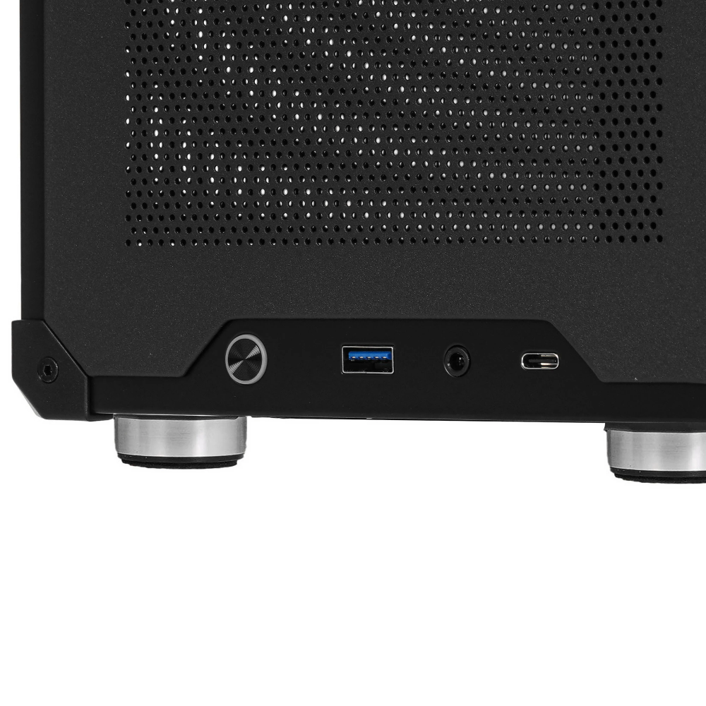 Благодаря верхнему размещению блока питания, корпус обеспечивает эффективное охлаждение и оптимальную циркуляцию воздуха. Четыре слота расширения позволяют установить видеокарту или другие платы, а поперечное расположение жесткого диска упрощает его монтаж. Сетчатые панели корпуса подчеркивают оригинальный дизайн, позволяя демонстрировать элементы внутренних компонентов.