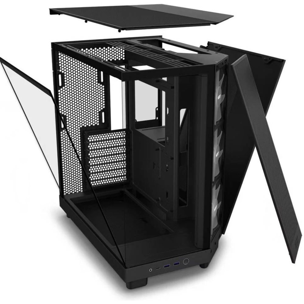Корпус NZXT H6 Flow RGB позиционируется как основа для производительной сборки, допускающая установку материнских плат типов Micro-ATX, Mini-ITX, и Standard-ATX. Для подключения 2.5" накопителей эта модель предоставляет 2 отсека, для монтажа дисков форм-фактора 3.5 дюйма 1 отсек. Корпус поставляется без БП, который можно выбрать отдельно с учетом общей потребляемой мощности компонентов системы. Для блока питания форм-фактора ATX в нем предусмотрен нижний отсек, а I/O-панель располагается снизу.