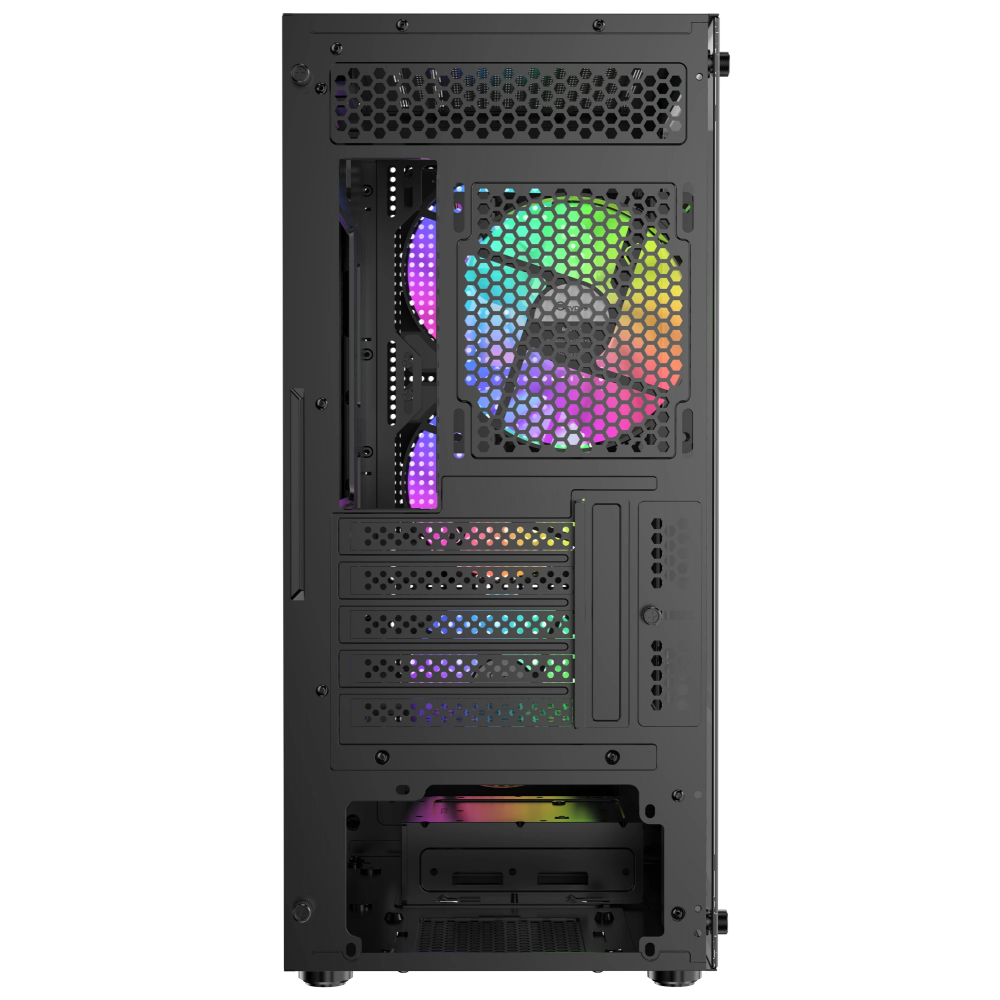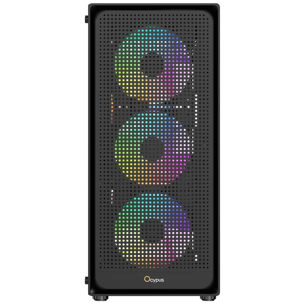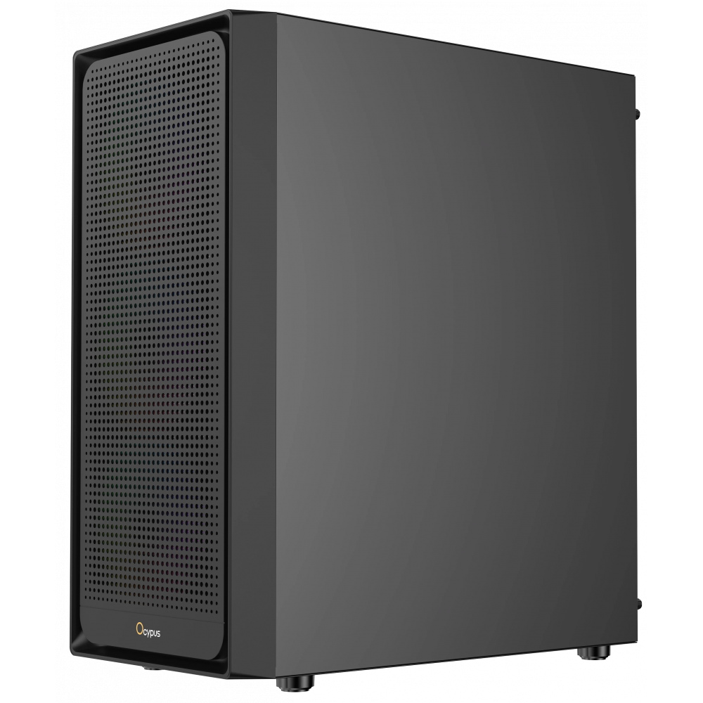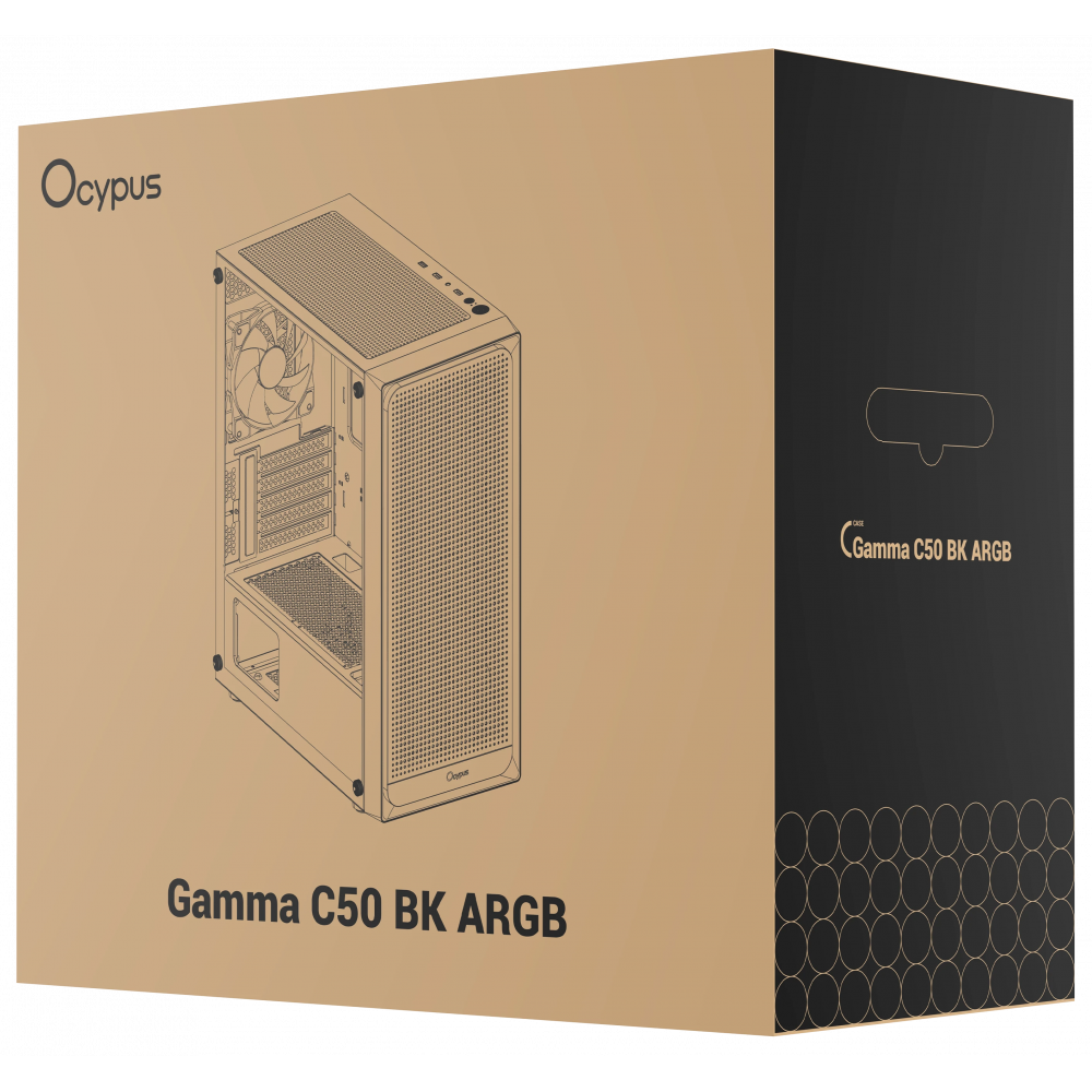 Корпус Ocypus Gamma C50 ARGB относится к формату Mini-Tower. Это значит, что внутри можно успешно уместить все необходимые для «геймерской» машины компоненты. В нем объединились стекло, пластик и сталь. Боковые панели фиксируются на винты сбоку.