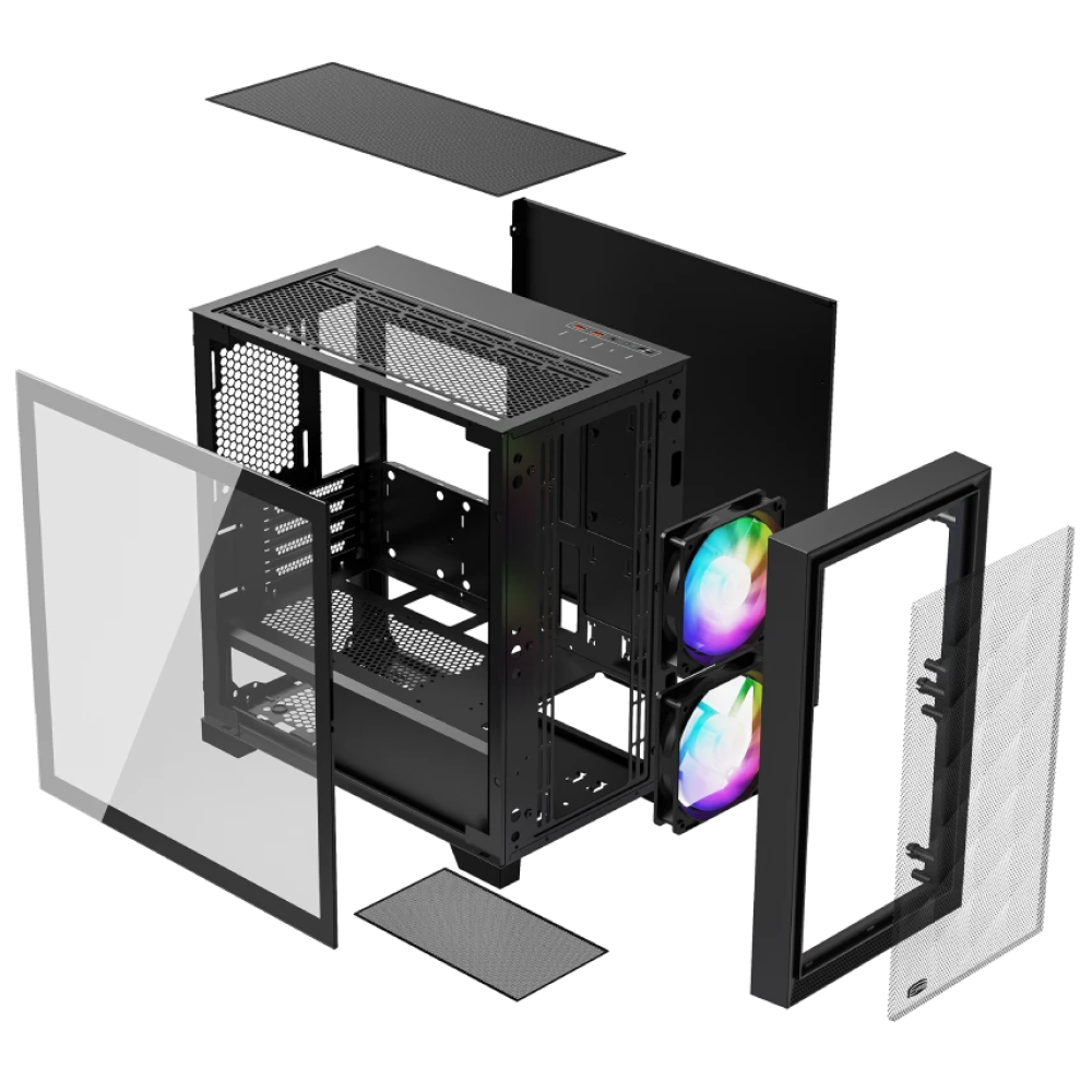 Корпус PCCooler C3D310 ARGB предусматривает все необходимое для сборки мощного игрового компьютера. Модель с типоразмером Mini-Tower поддерживает вертикальную установку материнской платы, которая может иметь форм-фактор Micro-ATX/Mini-ITX. Корпус порадует прочностью и надежностью, обеспеченной использованием в качестве материала изготовления стали толщиной 0.6 мм. Чтобы оценить всю красоту готовой сборки, в конструкции предусмотрено прозрачное боковое окно из закаленного стекла.