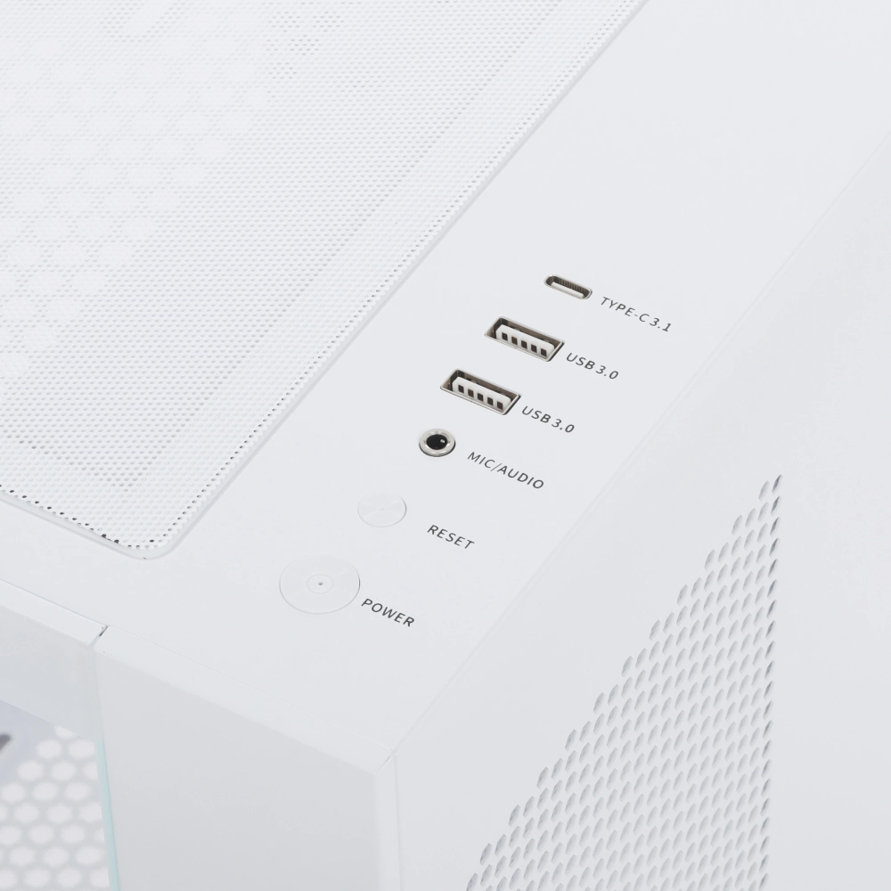 Корпус PCCooler C3 T500 WH [C3-T500WHD0-GL] с дизайном в белом цвете обеспечивает панорамный обзор компонентов ПК благодаря исполнению «аквариум». Фронтальная и боковые панели из закаленного стекла соприкасаются друг с другом. Необходимое качество теплообмена обеспечивается благодаря значительной площади перфорированных элементов. Прокладка кабелей за задней стенкой улучшает организацию внутреннего пространства компьютера и повышает эффективность вентиляции.