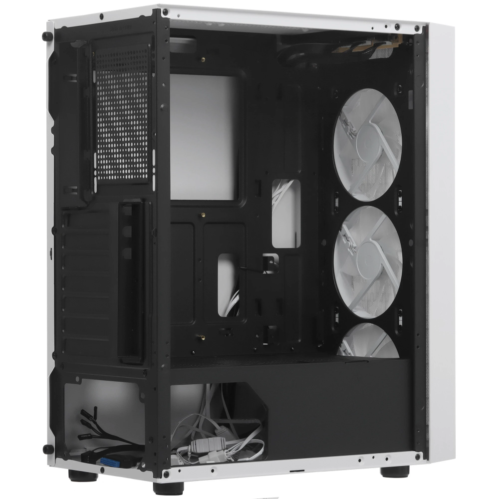 Корпус PCCooler MA100 MESH WH (C3-A510WHP3-GL) белого цвета оборудован полноразмерной боковой панелью из закаленного стекла. Модель типоразмера Mid-Tower с габаритами 360x200x446 мм рассчитана на сборку игрового или универсального компьютера. Устройство отличается высоким качеством вентиляции благодаря перфорированному исполнению верхней и фронтальной панелей. Принудительный теплообмен производят 3 вентилятора 120-миллиметрового форм-фактора. Устройства охлаждения оснащены адресуемой RGB подсветкой, преимуществом которой является возможность одновременного отображения нескольких цветов.