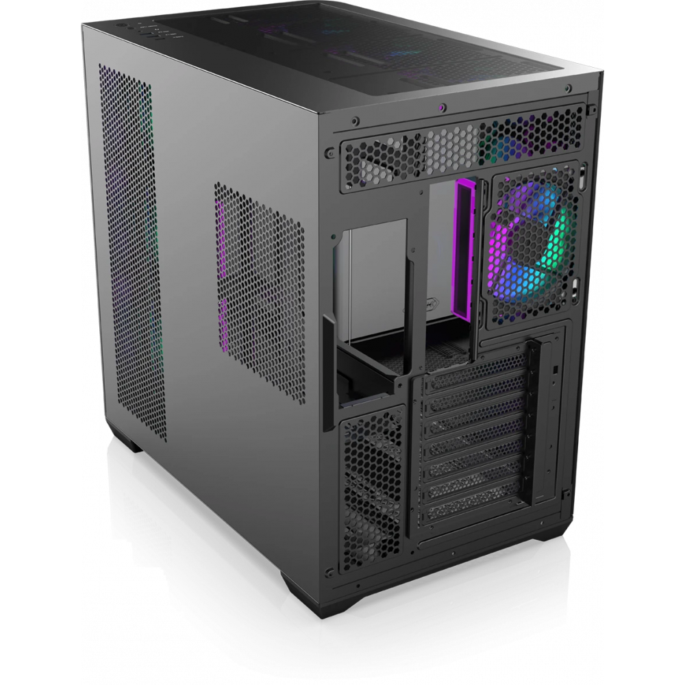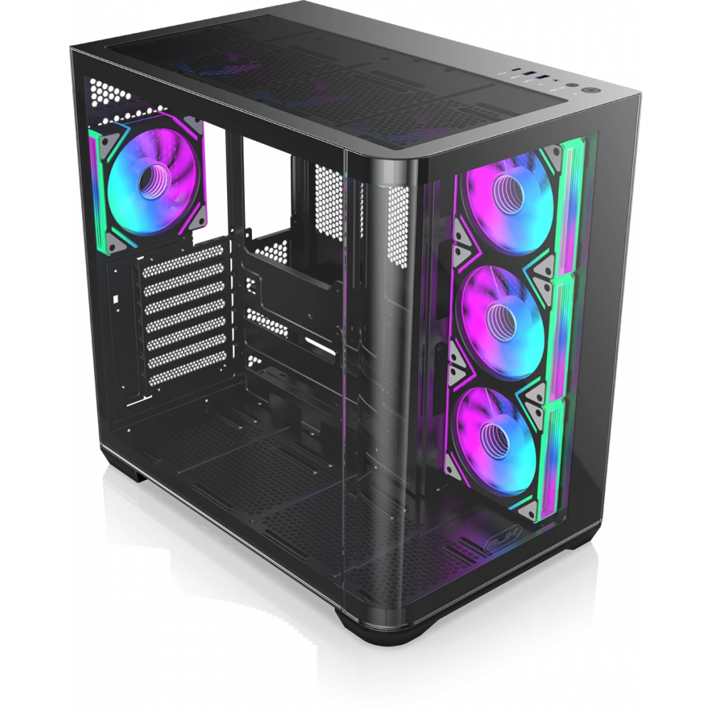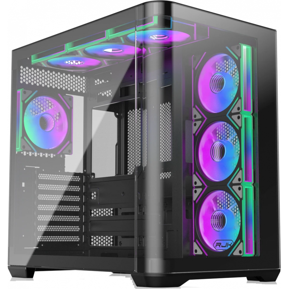 Корпус Raijintek ATREUS BT7 подходит для сборки компьютера с использованием плат типоразмеров E-ATX, Micro-ATX, Mini-ITX и Standard-ATX. Дизайн в виде аквариума с прозрачными панелями из закаленного стекла открывает панорамный обзор на элементы ПК. Модель оснащена зазорами для прокладки кабелей за задней стенкой и вырезом для аккуратного размещения кулера. Пылевой фильтр сверху снижает уровень попадающих внутрь загрязнений. Установлена программируемая ARGB-подсветка вентилятора. Конструкция позволяет размещать систему жидкостного охлаждения.