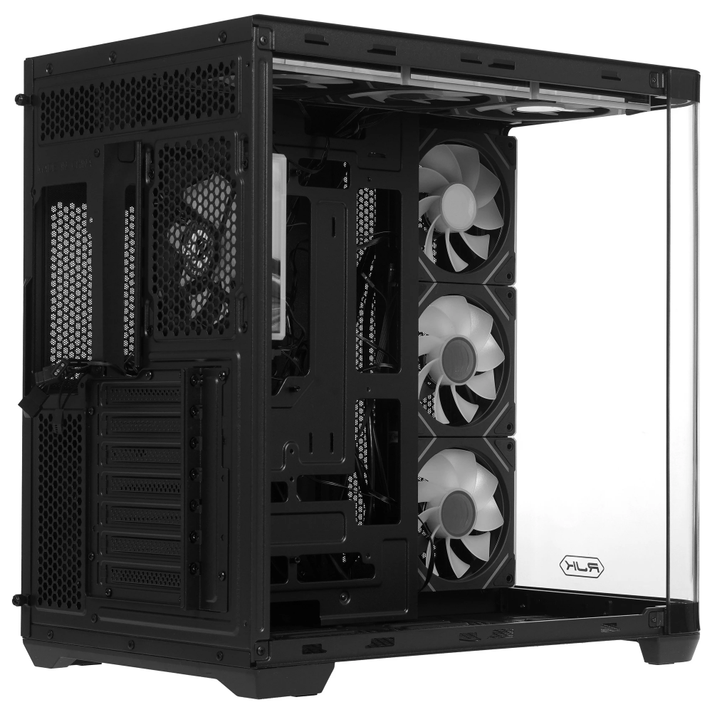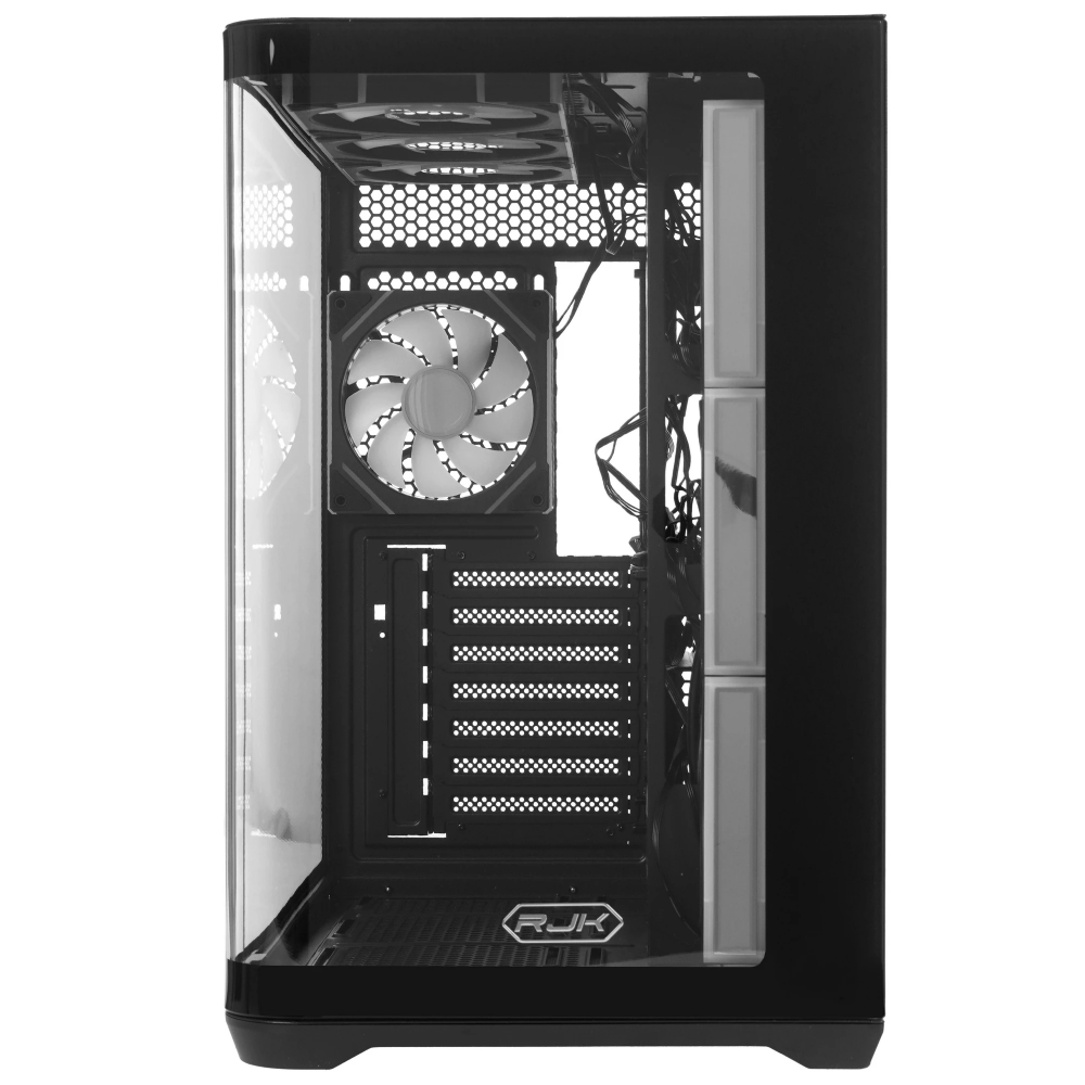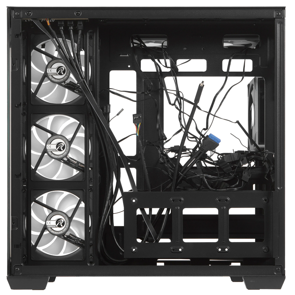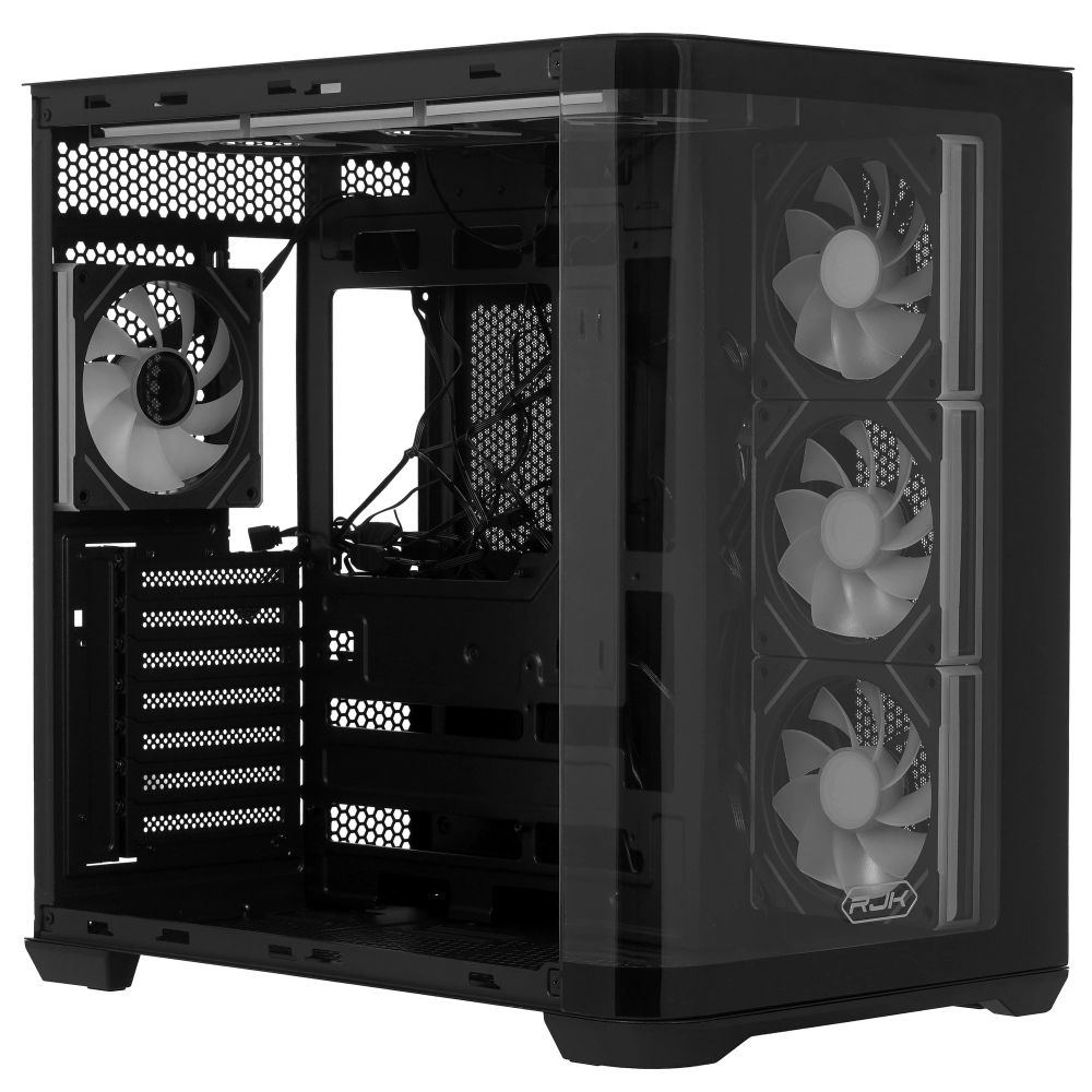 Корпус Raijintek ATREUS BT7 подходит для сборки компьютера с использованием плат типоразмеров E-ATX, Micro-ATX, Mini-ITX и Standard-ATX. Дизайн в виде аквариума с прозрачными панелями из закаленного стекла открывает панорамный обзор на элементы ПК. Модель оснащена зазорами для прокладки кабелей за задней стенкой и вырезом для аккуратного размещения кулера. Пылевой фильтр сверху снижает уровень попадающих внутрь загрязнений. Установлена программируемая ARGB-подсветка вентилятора. Конструкция позволяет размещать систему жидкостного охлаждения.
