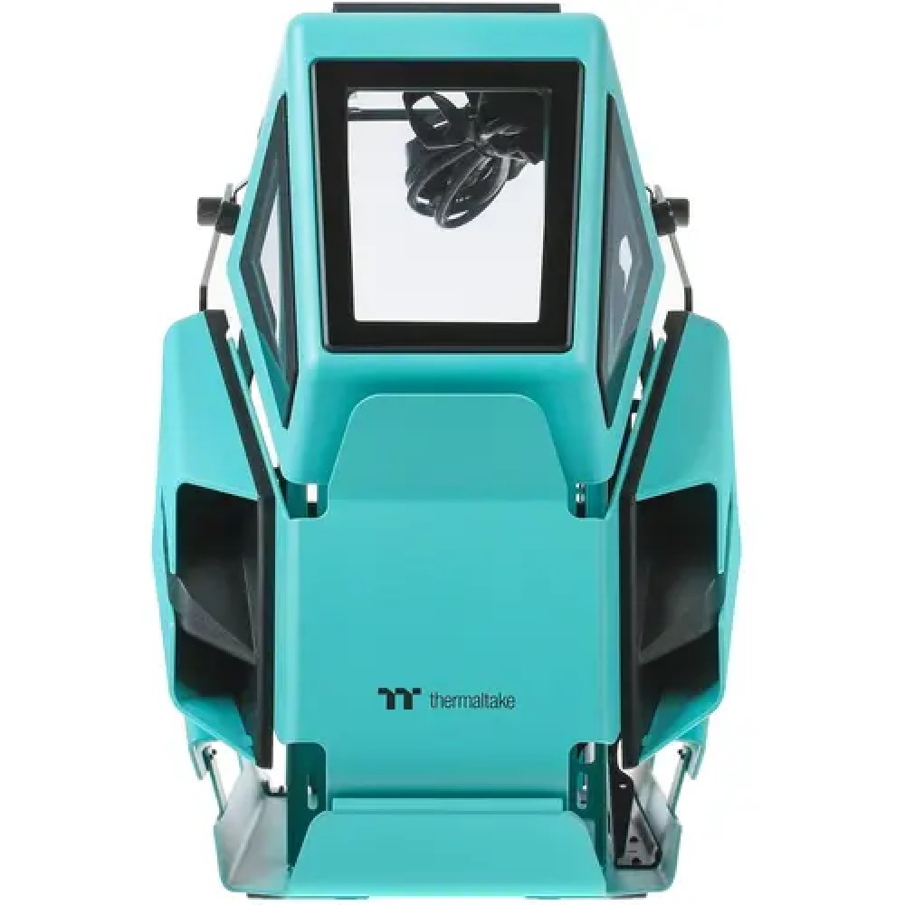 Дизайн корпуса Thermaltake AH T200 Turquois вдохновлен военными вертолетами ВВС. Он имеет 4 панели из толстого (4 мм) закаленного стекла. Внутри него получится собрать производительную геймерскую машину. В нем вертикально уместится материнская плата формата Micro-ATX или Mini-ITX. Блок питания располагается снизу.