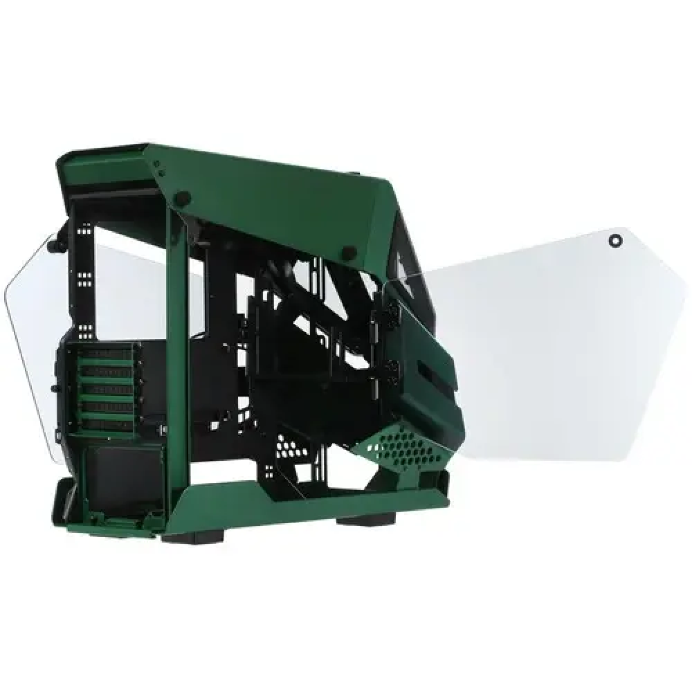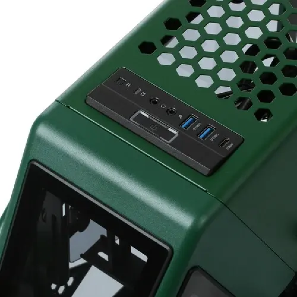 Корпус Thermaltake AH T200 Racing Green [CA-1R4-00SCWN-00] имеет крайне необычный дизайн, вдохновленный внешним видом вертолета. Кроме того, он выполнен в уникальном оттенке «Гоночный зеленый». Его невозможно не заметить! При этом миниатюрные размеры модели позволяют разместить ее где угодно. Боковые панели изготовлены из закаленного стекла толщиной 4 мм. В конструкции корпуса Thermaltake AH T200 Racing Green [CA-1R4-00SCWN-00] есть все необходимые порты и интерфейсы для подключения периферии, а футуристичная кнопка включения располагается в верхней части лицевой панели.