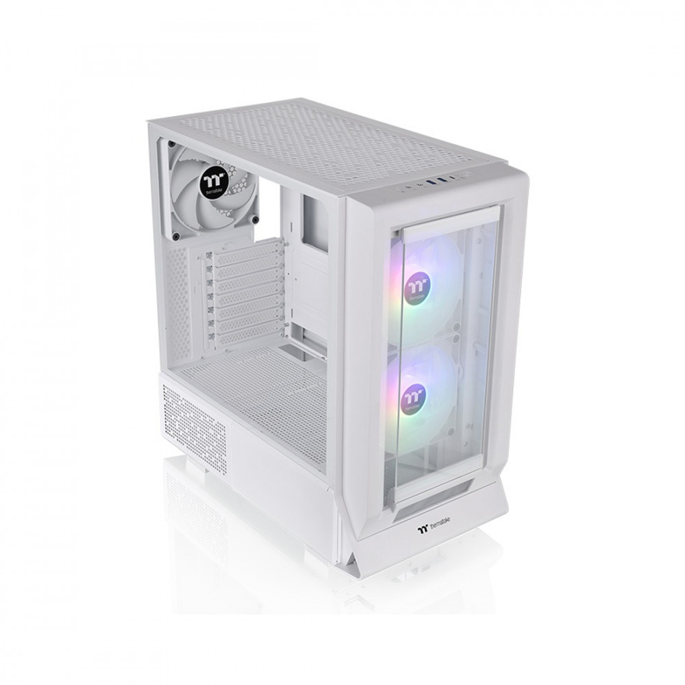 Thermaltake Ceres 350 MX - это корпус формата Mid Tower, который поддерживает материнские платы ASUS и MSI со скрытыми разъемами и комплектуется двумя вентиляторами CT140 ARGB Sync, предустановленными спереди и одним вентилятором CT140 сзади. Синхронизировать подсветку можно с материнскими платами производства ASUS, GIGABYTE, MSI и ASRock имеющих интерфейс для подключения светодиодных лент адресного типа с напряжением питания 5В. Панели корпуса имеет перфорацию более 55%, что обеспечивает наилучший приток холодного воздуха. Более того, в корпус можно установить до пяти 140мм вентиляторов или семи 120мм вентиляторов, а также разместить один 360мм радиатор на передней части и один 280мм радиатор на верхней.