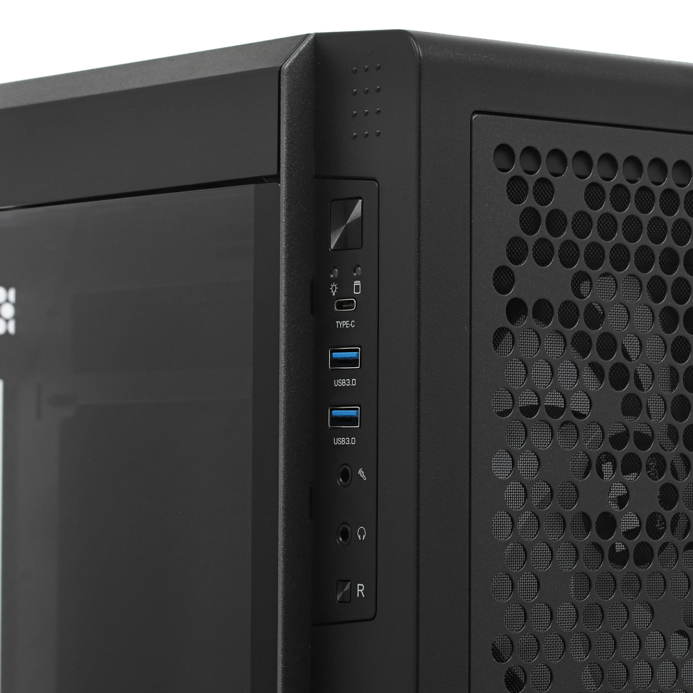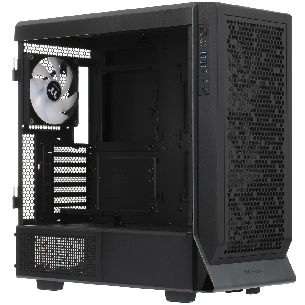 Корпус имеет 4 вентилятора. Боковая панель из закаленного стекла обеспечивает прекрасный вид на содержимое конструкции. Также корпус Thermaltake Ceres 500 [CA-1X5-00M1WN-00] имеет удобный доступ к интерфейсам на верхней панели, включая 2 USB 3.2 порта, разъем для наушников и микрофона. Он поддерживает различные варианты размещения жестких дисков и SSD-накопителей.