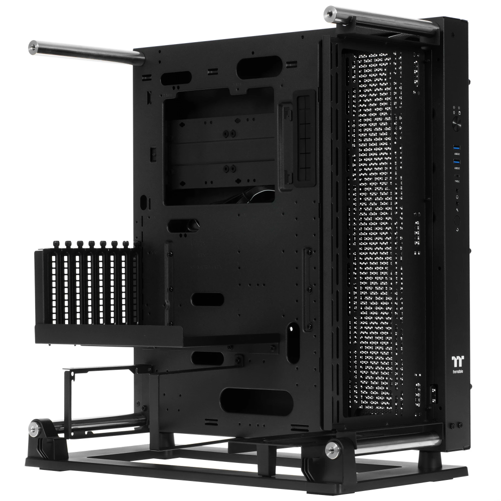 Корпус Thermaltake Core P3 имеет просторный внутренний объем, что позволяет установить большое количество компонентов и вентиляторов. У корпуса есть прозрачная боковая панель из закаленного стекла, что позволяет видеть все компоненты системы. Также он оснащен большим количеством портов и разъемов для подключения жестких дисков, SSD, оптических приводов, звуковых карт.