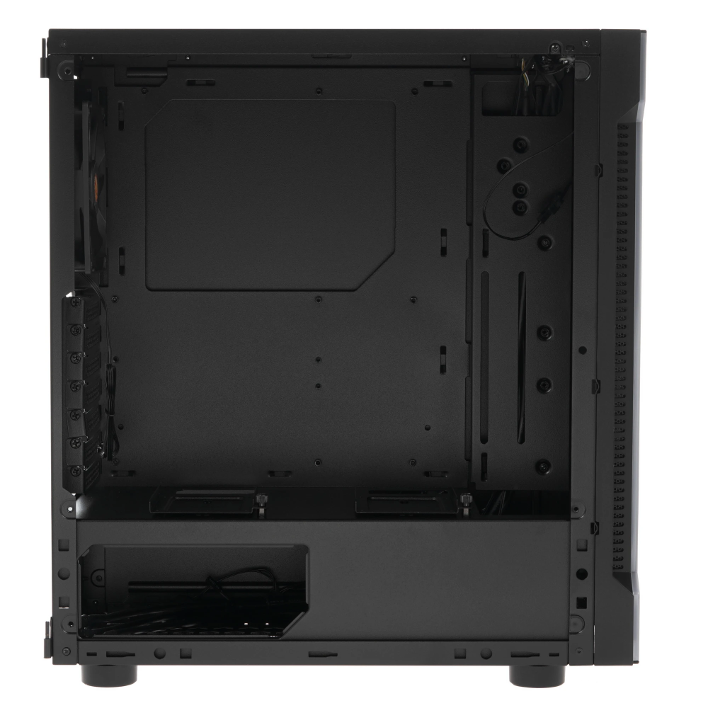 Также отметим, что расположение блока питания здесь нижнее — приступая к сборке, это необходимо учитывать. Помимо этого, в корпусе есть три отсека для накопителей SSD и два отсека под стандартные HDD. Установить в данную модель можно материнские платы форм-факторов Micro-ATX, Mini-ITX и Standard-ATX.