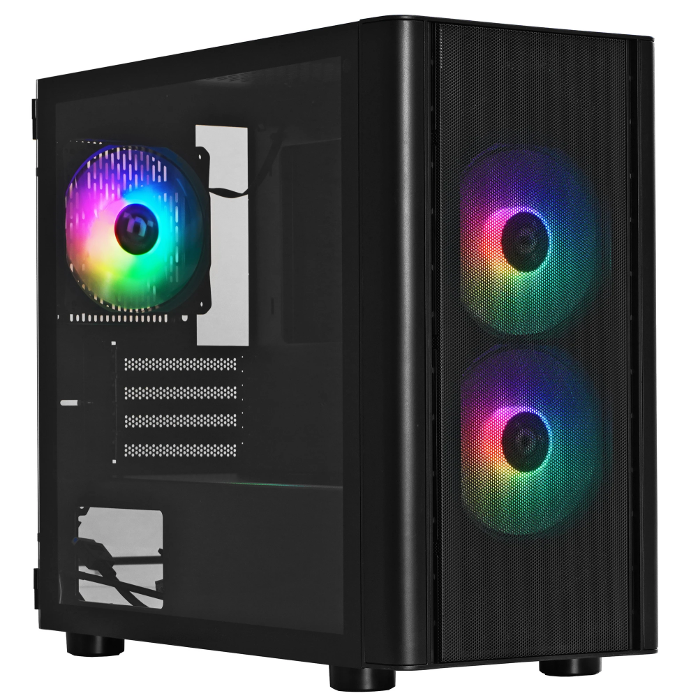 Соответствующий типоразмеру Mini-Tower корпус Thermaltake V150 TG ARGB Breeze Edition (CA-1R1-00S1WN-02) рассчитан на сборку компактного компьютера для дома или офиса. Системный блок может быть игровым. Несмотря на компактность, корпус вмещает видеоадаптер с длиной до 350 мм. Высота кулера процессора ограничена 155 мм. Корпус имеет эффектный дизайн. 3 предустановленных вентилятора с многоцветной подсветкой создают завораживающую обстановку в темном помещении. Перфорированная передняя панель улучшает охлаждение компьютера. Боковая панель из прочного закаленного стекла позволяет любоваться компонентами ПК.