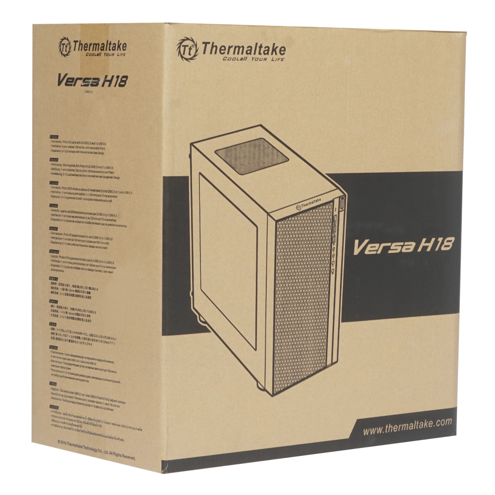 Корпус Thermaltake Versa H18, выполненный в черном цвете, имеет малые габариты и минималистичный дизайн, обладает высоким потенциалом для построения производительной домашней станции или рабочей машины на основе материнской платы Micro-ATX или Mini-ITX. Модель типоразмера Micro tower предусматривает установку блока питания ATX, видеокарты длиной до 350 мм. Его предустановленная система охлаждения состоит из эффективного кулера размером 120 мм. Систему отвода тепла можно дополнить в соответствии с особенностями системного блока.
