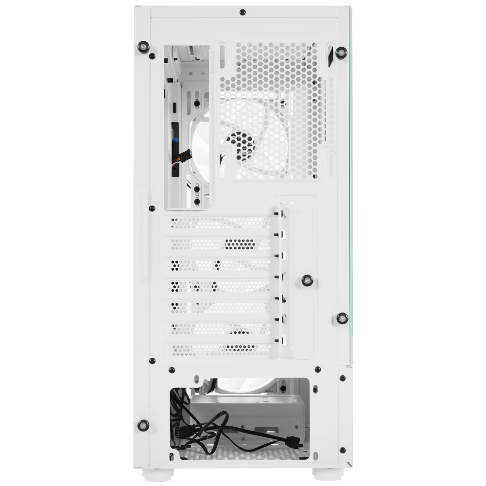 Белый корпус Thermaltake View 200 TG Snow (CA-1X3-00M6WN-00) формата Mid-Tower имеет привлекательный дизайн с боковой панелью из закаленного стекла. Она позволяет видеть все компоненты внутри системы. Он также имеет пространство для установки 3.5-дюймовых жестких дисков и 2.5-дюймовых SSD. Его боковые панели фиксируются на панели сзади.