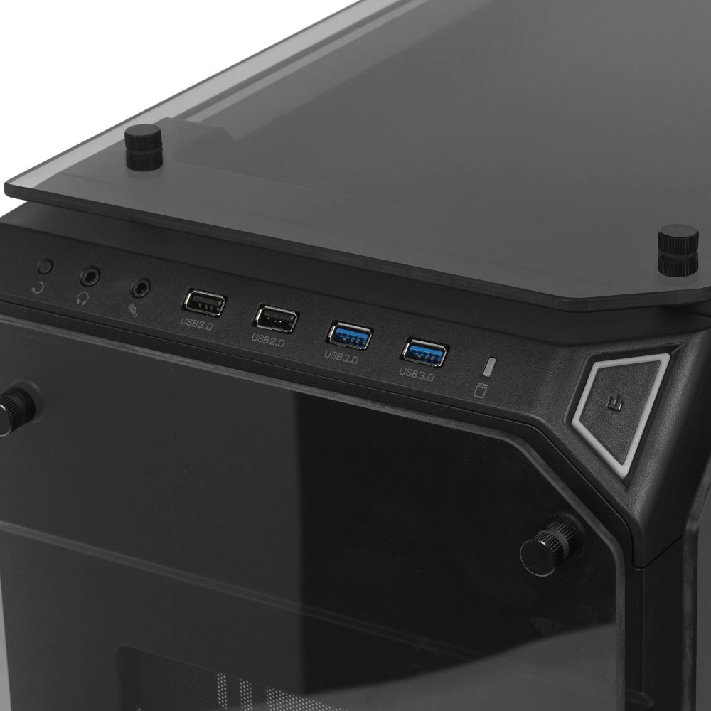 Предустановленная система воздушного охлаждения корпуса системного блока Thermaltake View 71 Tempered Glass RGB Edition включает 3 эффективных 140-миллиметровых вентилятора. Корпус поставляется без блока питания форм-фактора ATX,для размещения которого предусмотрен нижний отсек. Он может предложить внешние интерфейсы 2x USB 2.0, 2x USB 3.0, акустические разъемы для наушников и микрофона.