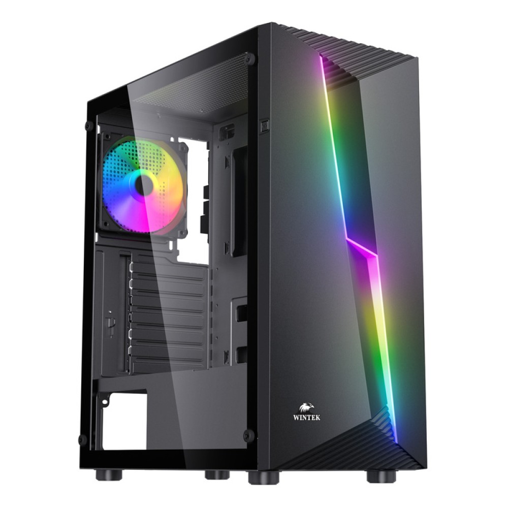 Корпус Wintek Lightning F27 B TG, ATX/Micro ATX, USB 1*3.0/2*2.0, HD-Audio+Mic, 1*12cm ARGB fan, черный