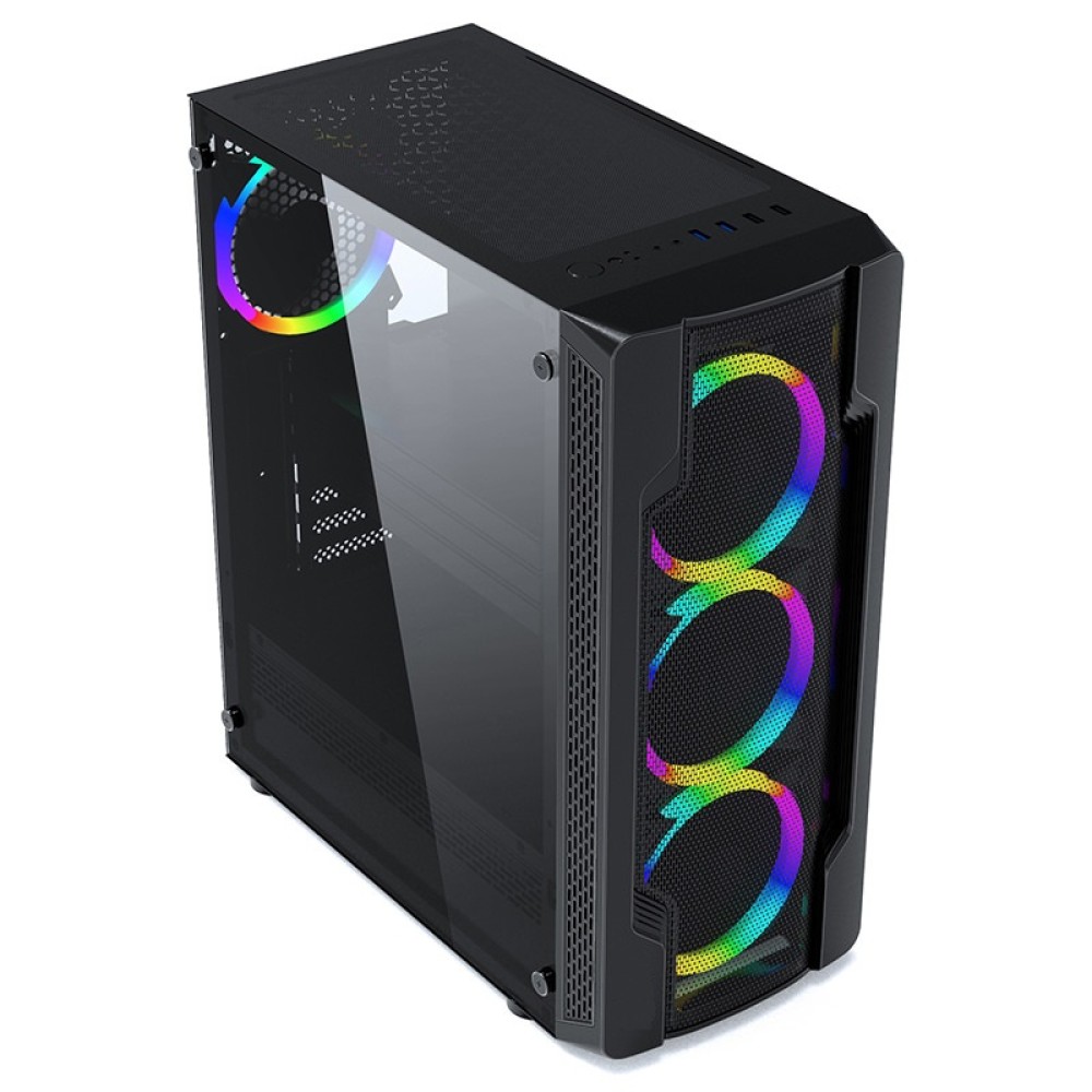 Корпус Wintek Star JX188-2 TG, ITX/ATX, USB 1*3.0/2*2.0, HD-Audio+Mic, 0,5mm, 4*ARGB fan + controller (ASUS+MSI+Gigabyte)