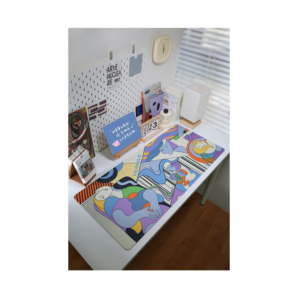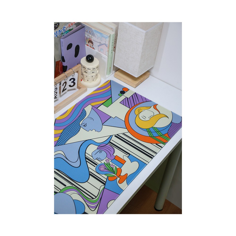 Коврик оформлен в стиле "Blue Period" Пабло Пикассо, что придает ему уникальный художественный вид. Этот период в творчестве Пикассо известен своей палитрой холодных синих тонов и глубокой эмоциональной выразительностью.