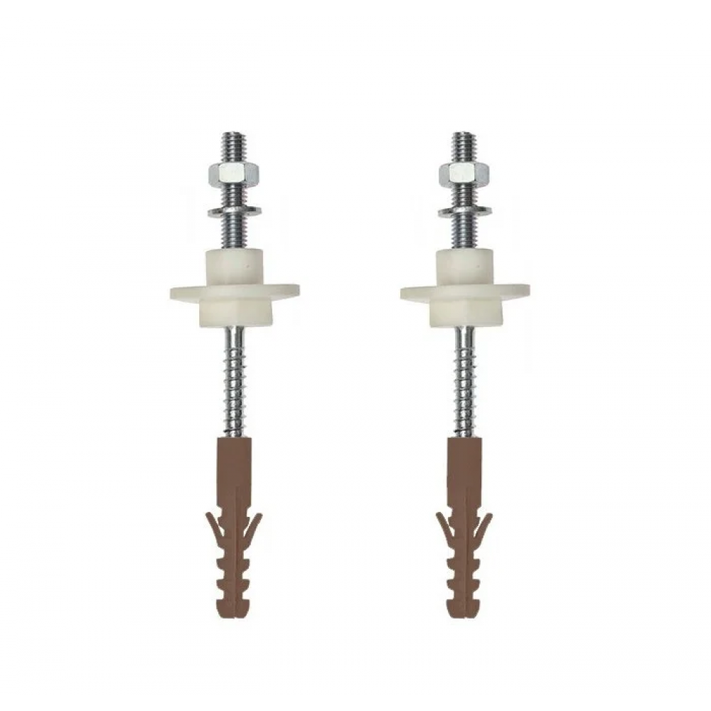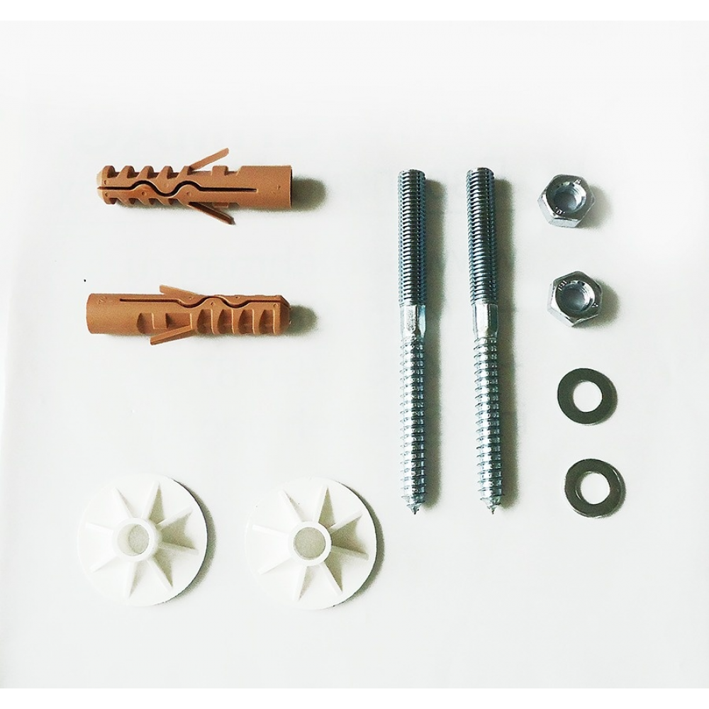 металлические шпильки с резьбой - 2 шт, пластиковый дюбель - 2 шт, гайка - 2 шт, шайба - 2 шт, пластиковая втулка - 2 шт